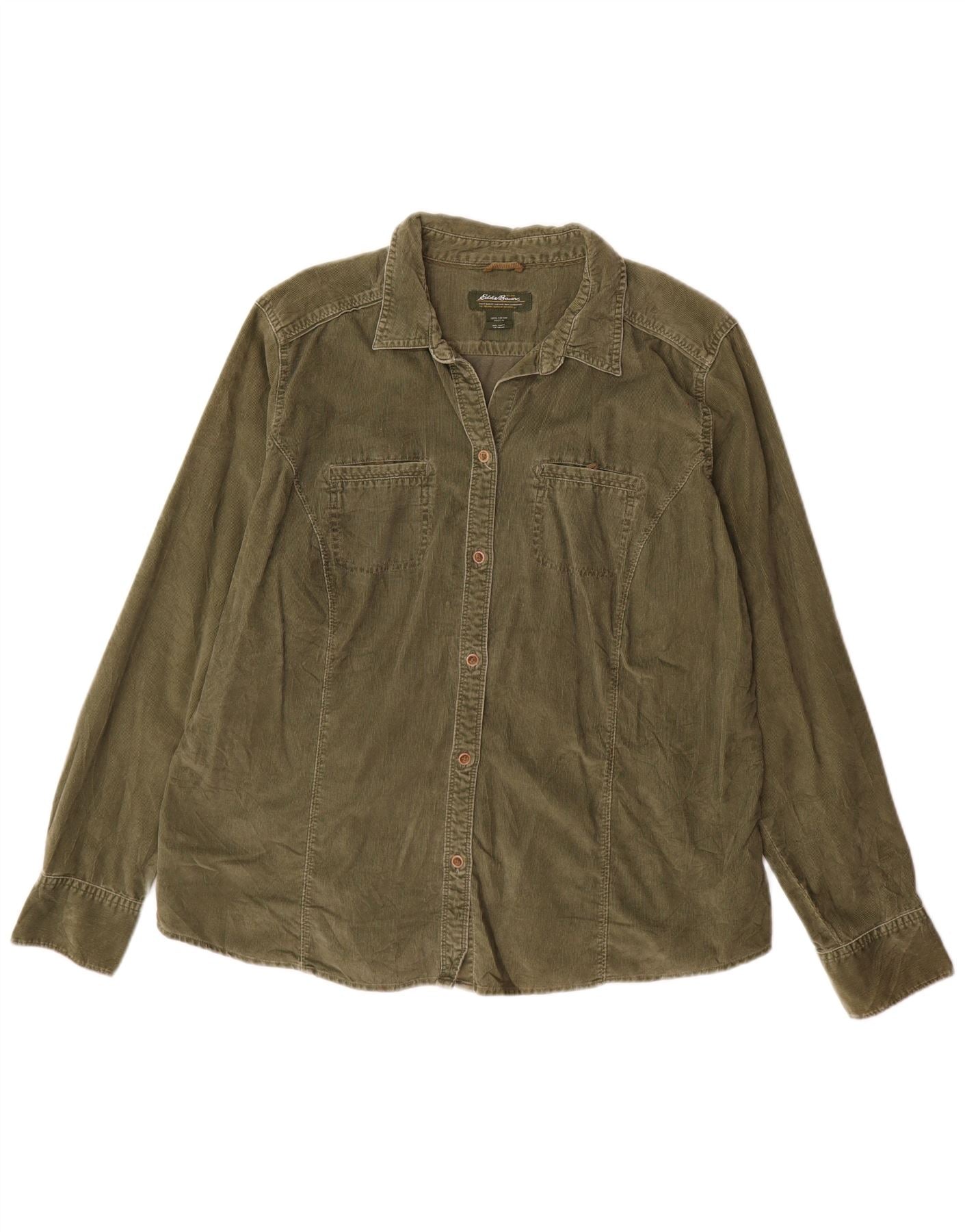 Cămașă înaltă din velur pentru femei EDDIE BAUER UK 18 XL bumbac verde