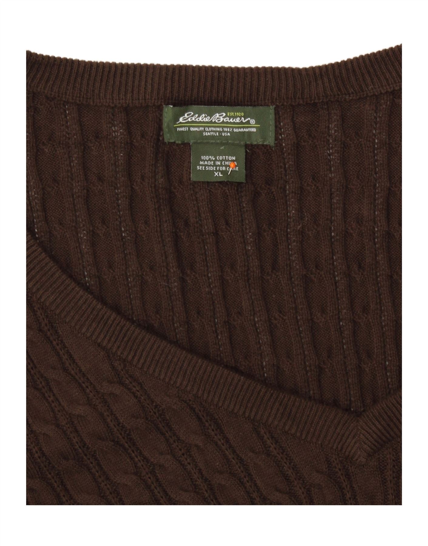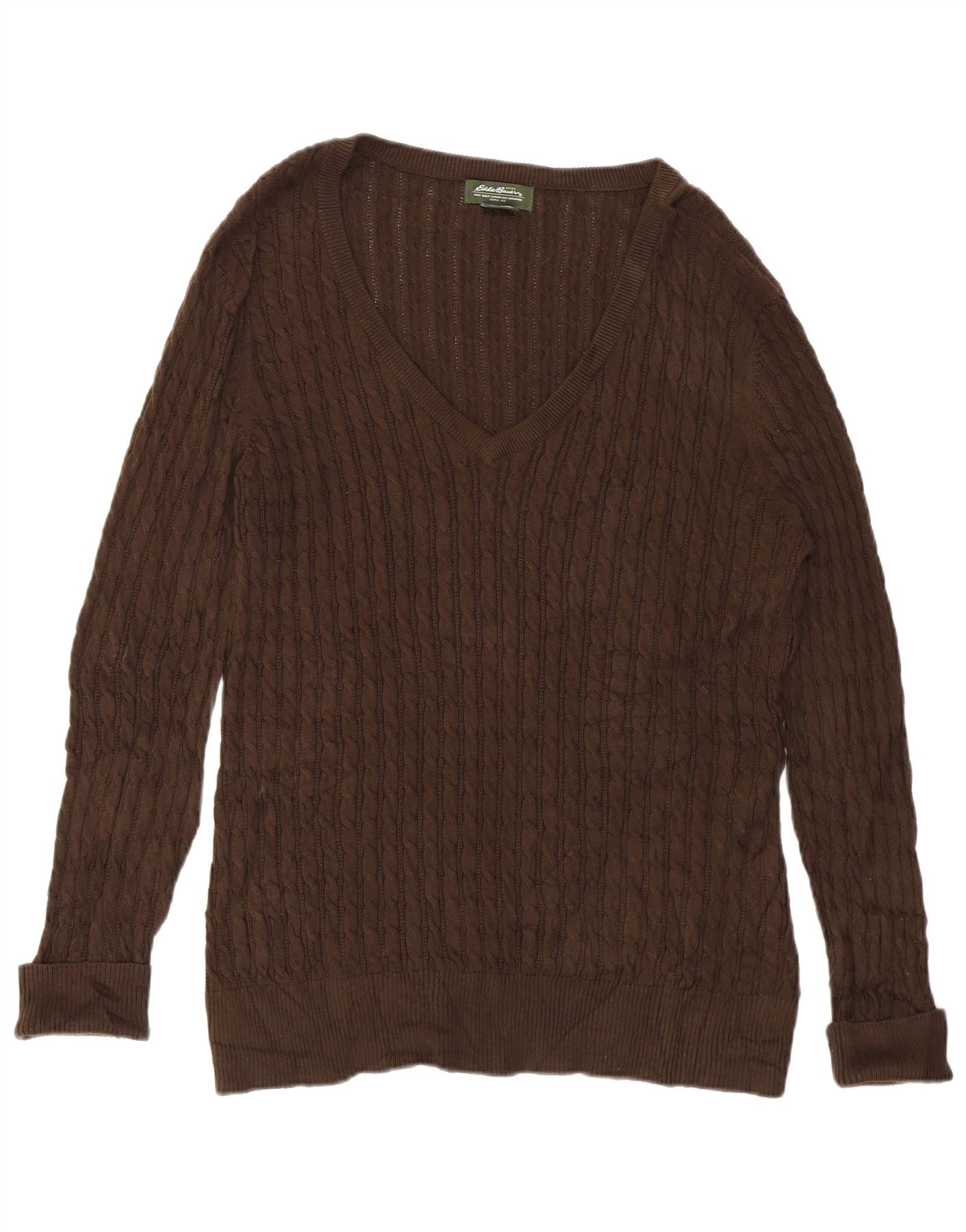 EDDIE BAUER Pulover cu decolteu în V pentru femei UK 18 XL bumbac maro