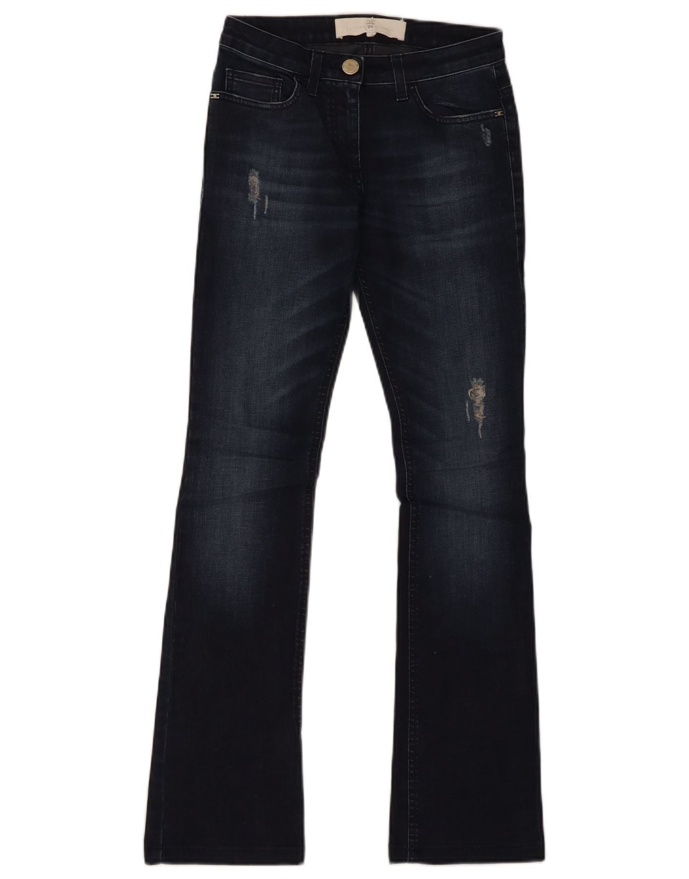 ELISABETTA FRANCHI Womens Distressed Bootcut Jeans W25 L31 Navy Blue