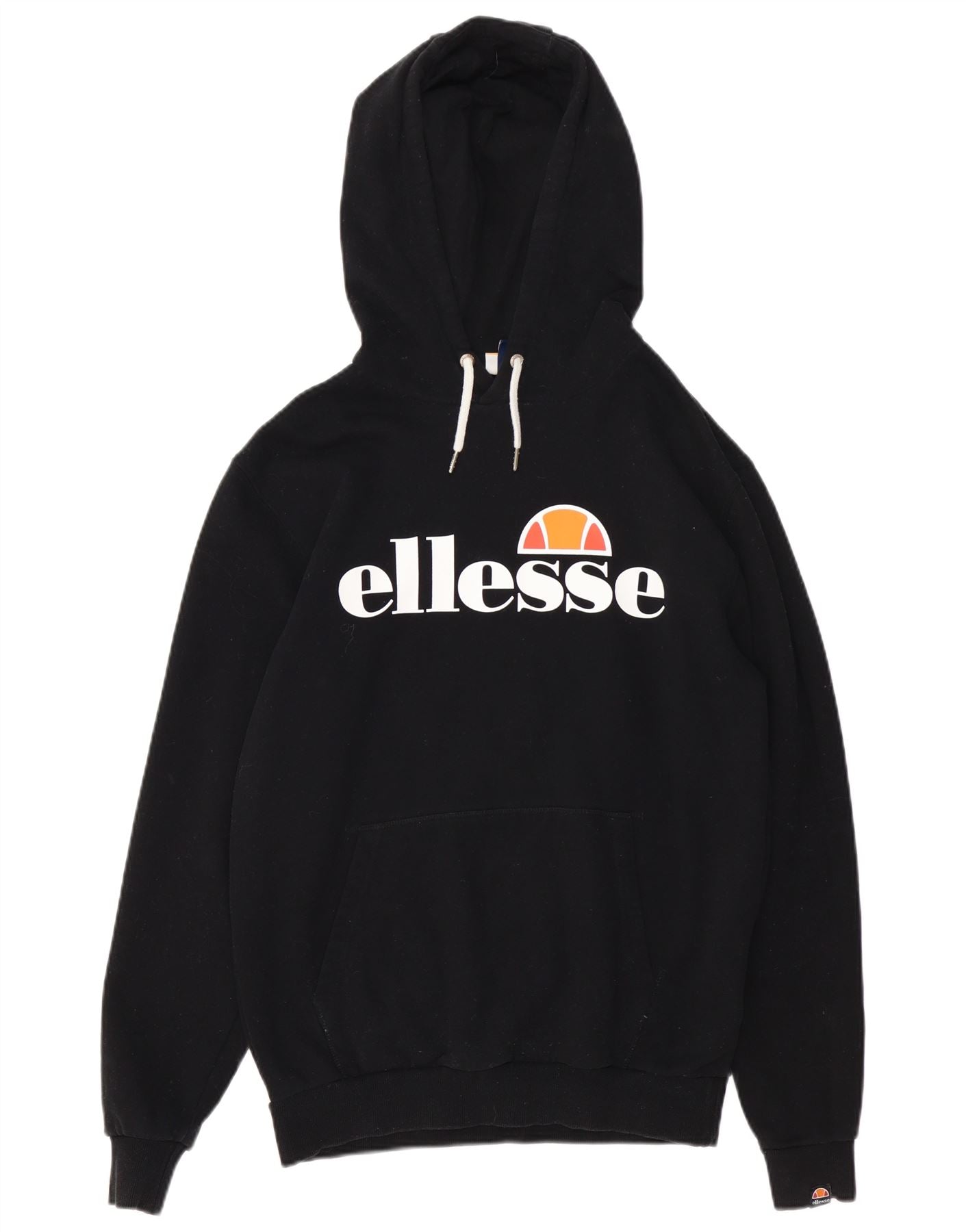 Pulover cu glugă cu grafic ELLESSE pentru femei UK 14, bumbac mediu negru