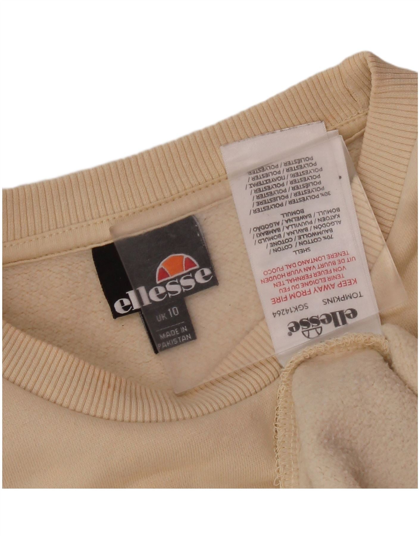 ELLESSE Pulover supradimensionat cu grafic pentru femei UK 10 Mic Bej