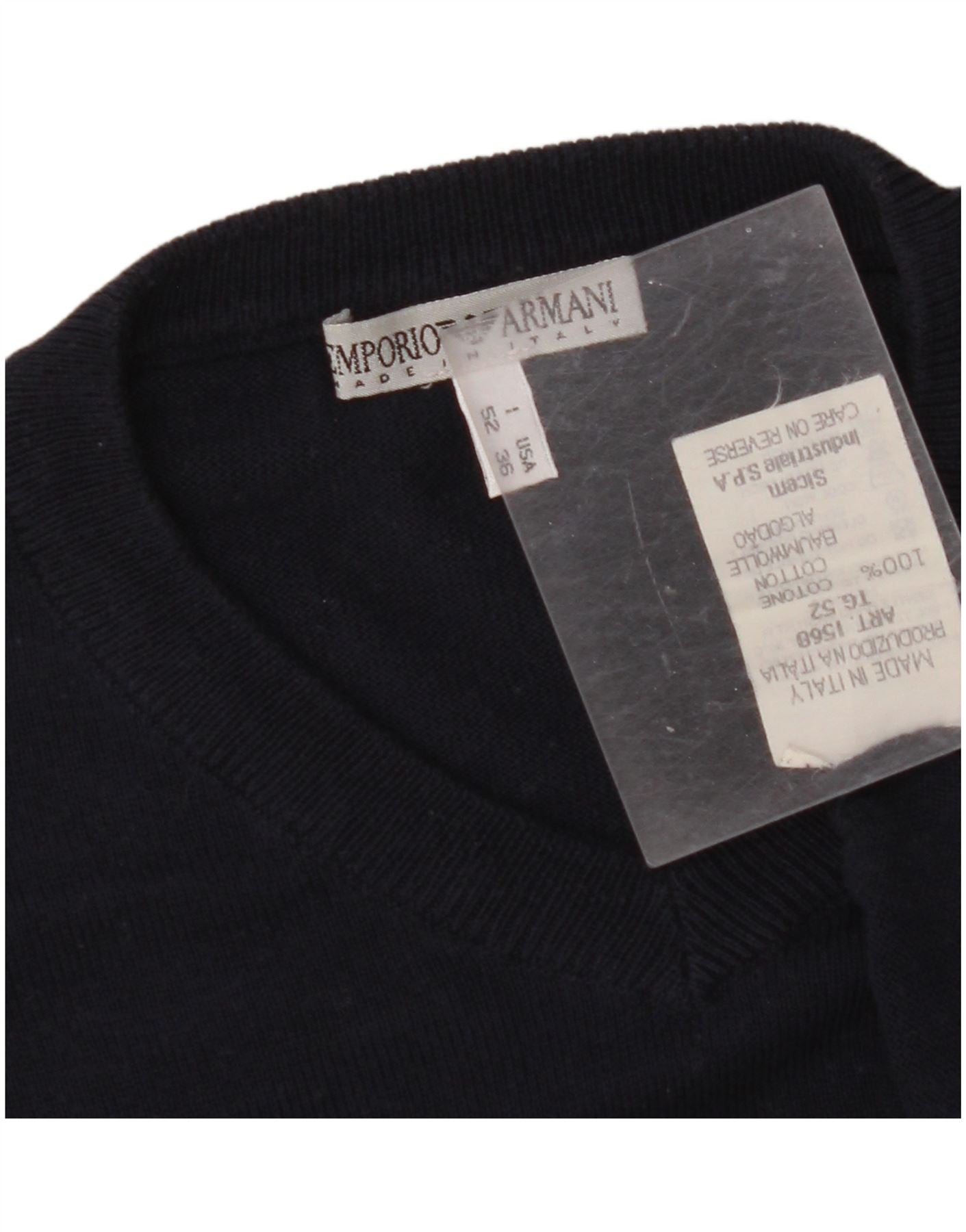EMPORIO ARMANI Mens V-Neck Jumper Sweater IT 52 Large Navy Blue