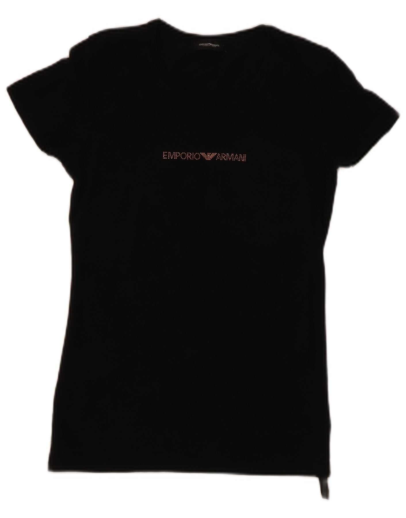 EMPORIO ARMANI Tricou cu grafic pentru femei Top UK 8 Small Black Bumbac