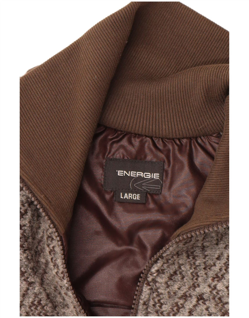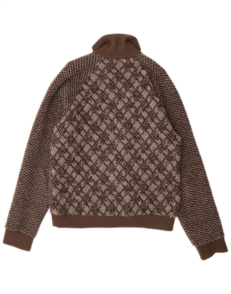 ENERGIE Mens Graphic Cardigan Sweater Large Brown Geometric Wool