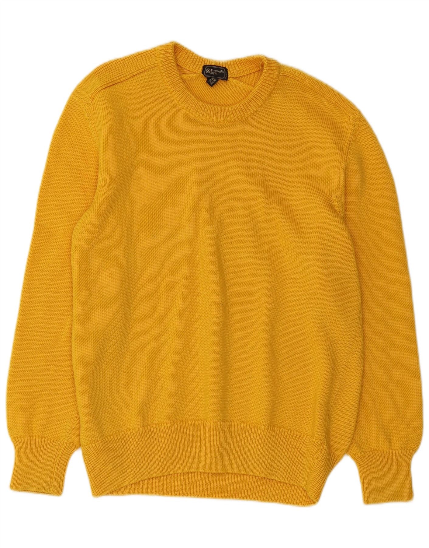 ERMENEGILDO ZEGNA Mens Crew Neck Jumper Sweater IT 52 Large Yellow Wool
