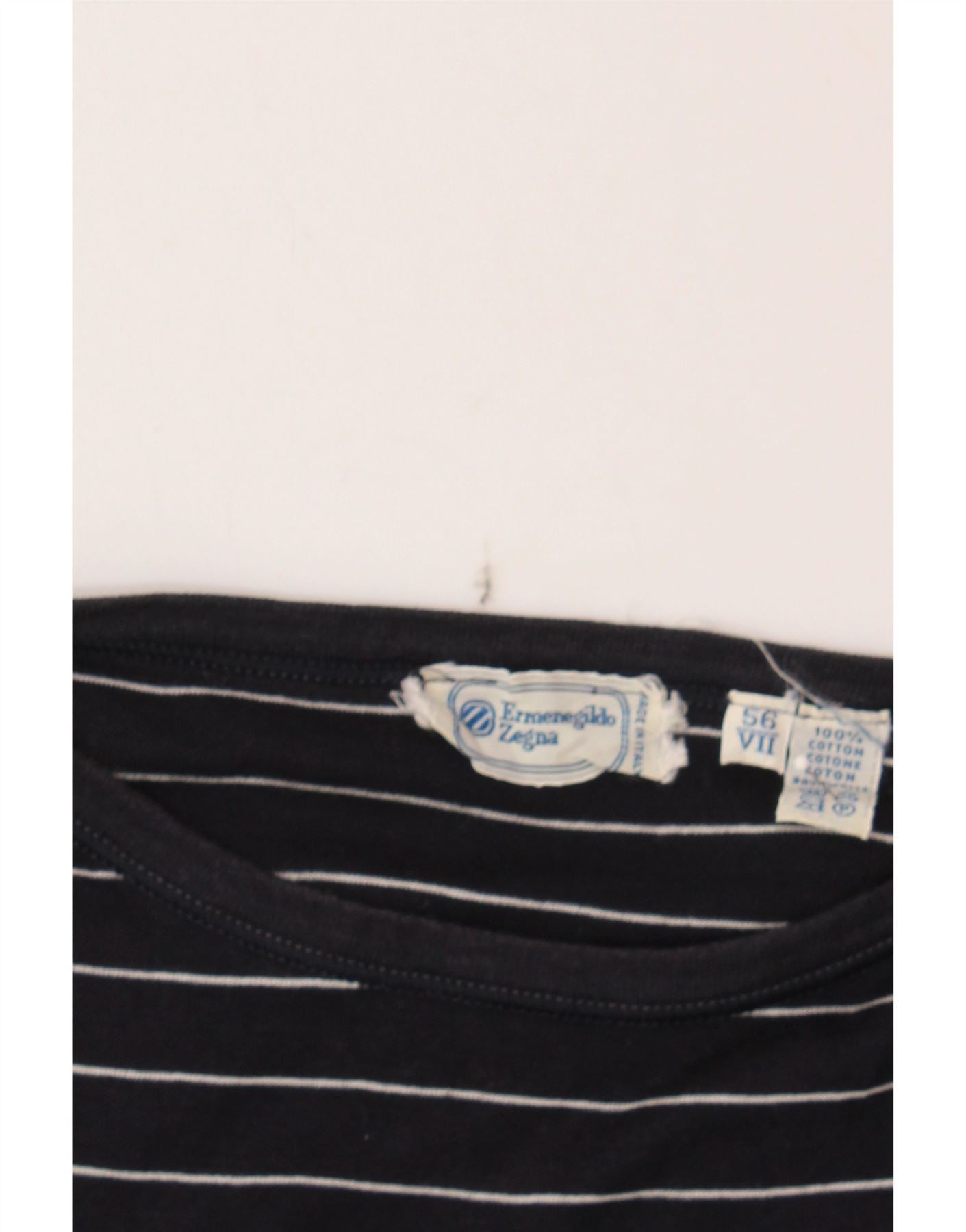 ERMENEGILDO ZEGNA Mens T-Shirt Top IT 56 2XL Navy Blue Striped Cotton
