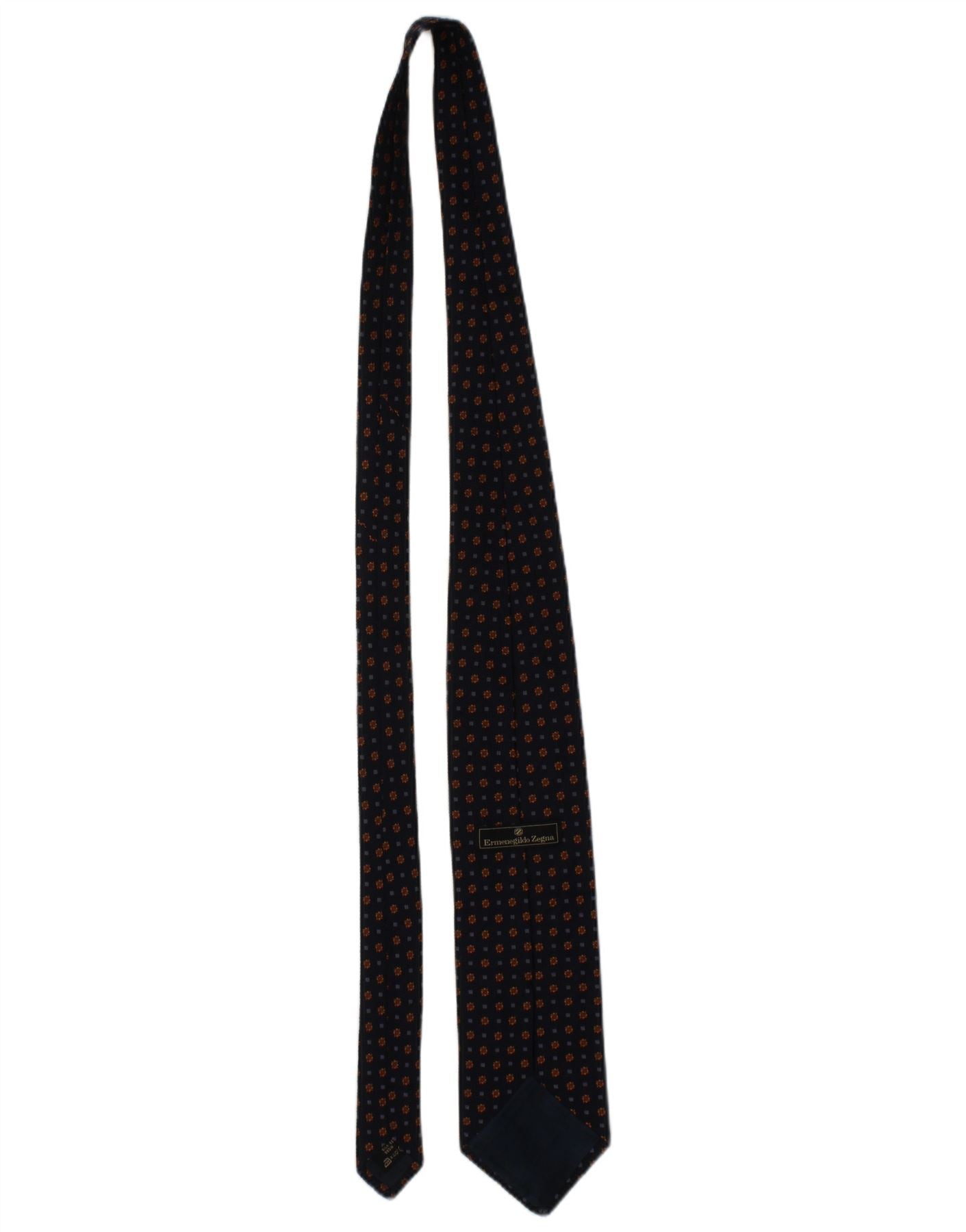 ERMENEGILDO ZEGNA Mens Tie One Size Navy Blue Geometric Silk Classic