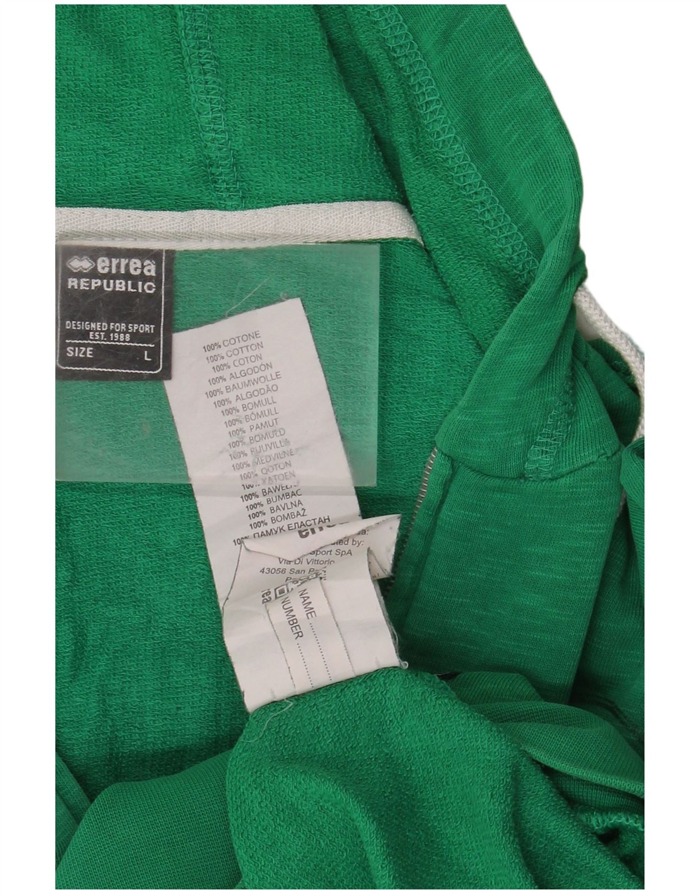 ERREA Pulover cu glugă cu fermoar pentru bărbați, bumbac verde mare