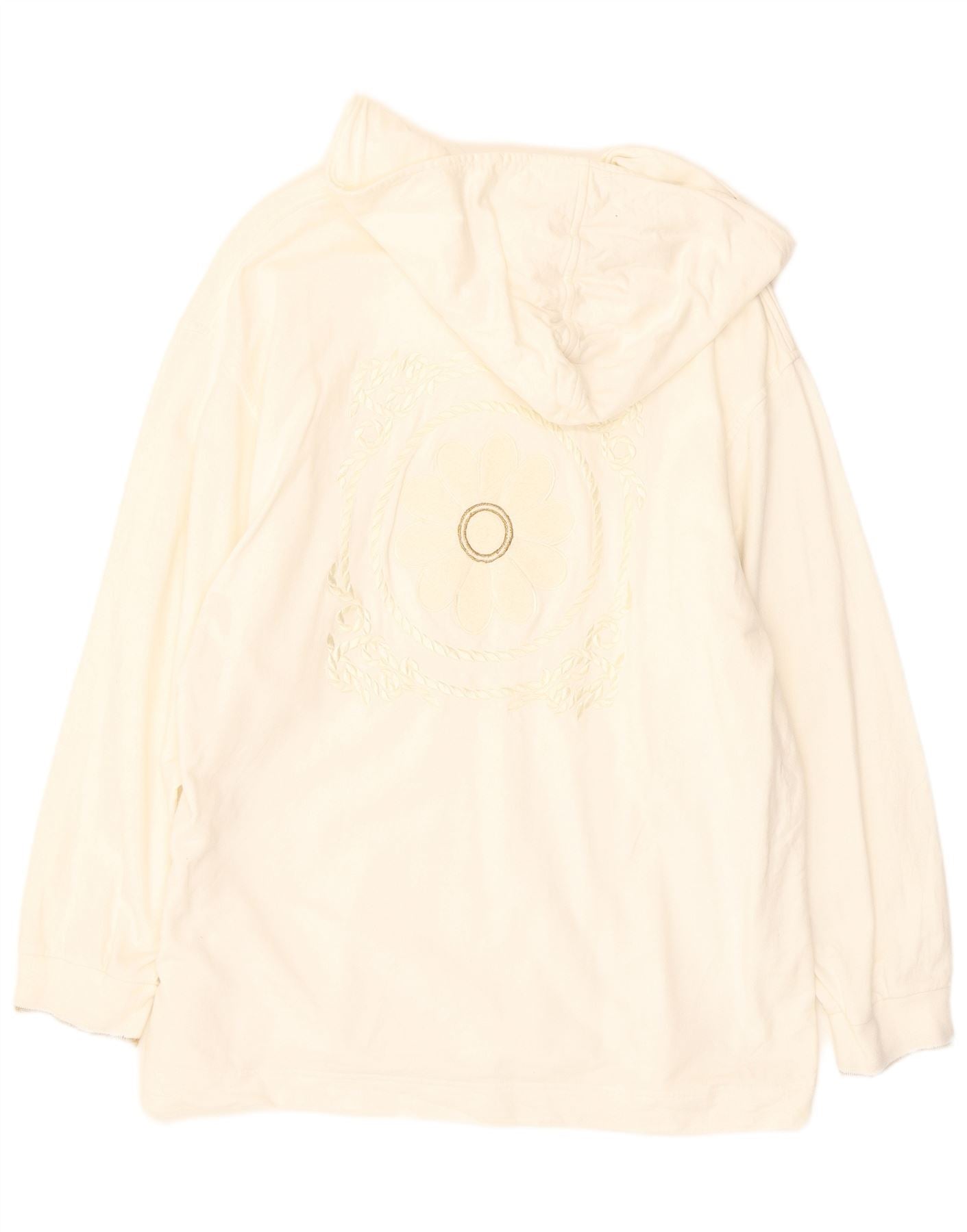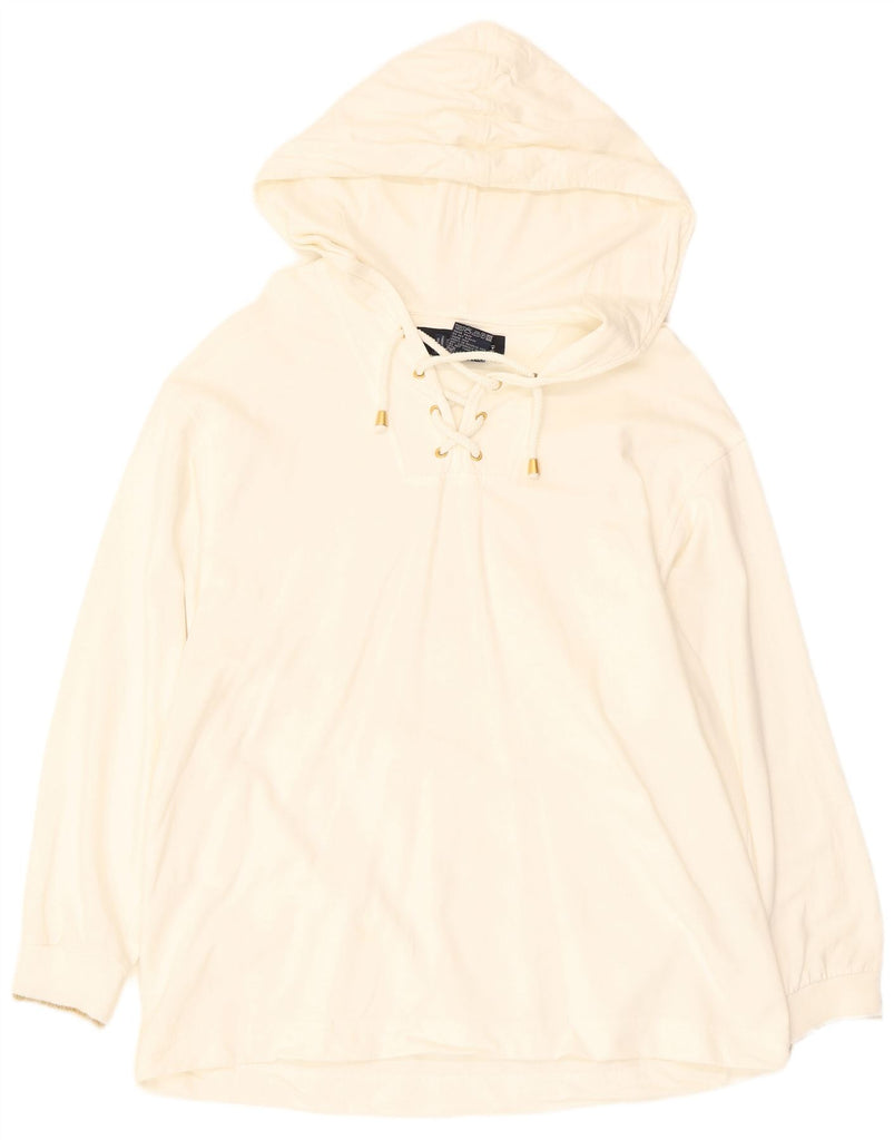 ESCADA Womens Graphic Hoodie Jumper UK 16 Large Off White Floral Cotton