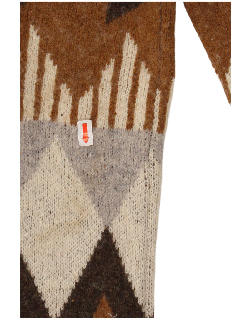 ESPRIT Womens Crew Neck Jumper Sweater UK 20 2XL Brown Geometric Wool