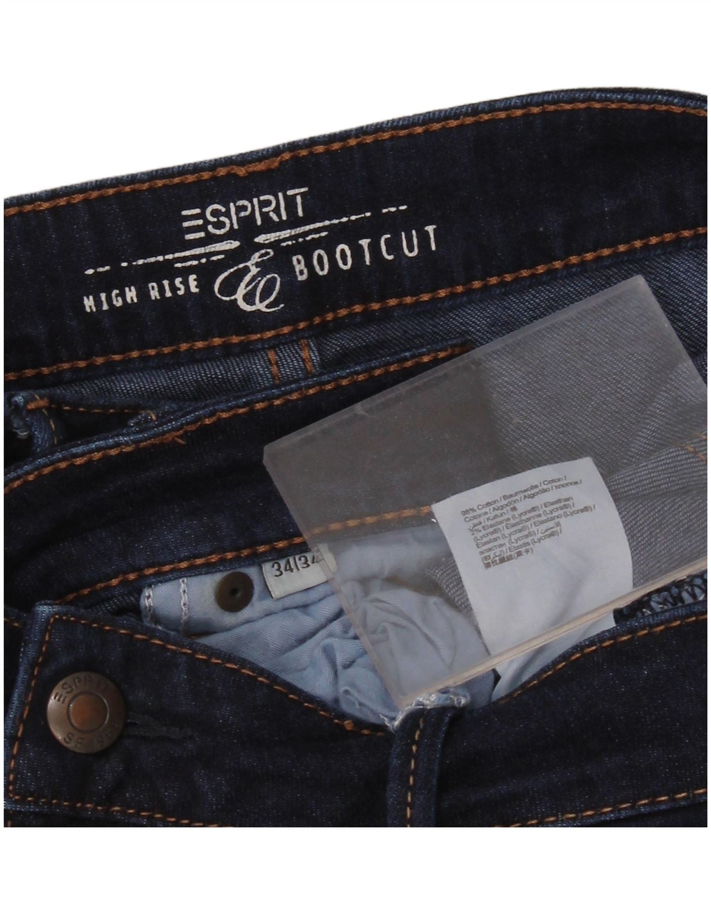 ESPRIT Womens High Rise Bootcut Jeans W34 L34 Navy Blue Cotton