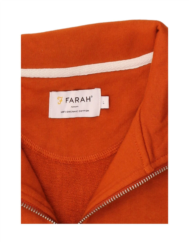 FARAH Mens Graphic Zip Neck Sweatshirt Jumper Large Orange Colourblock