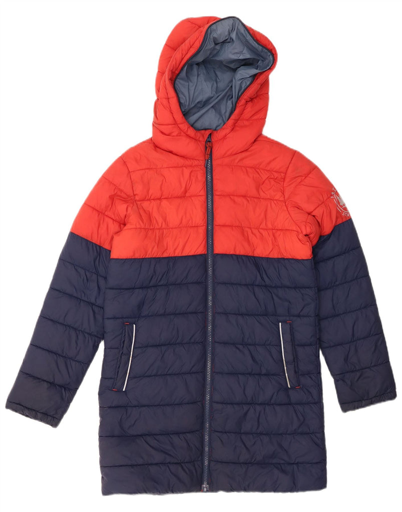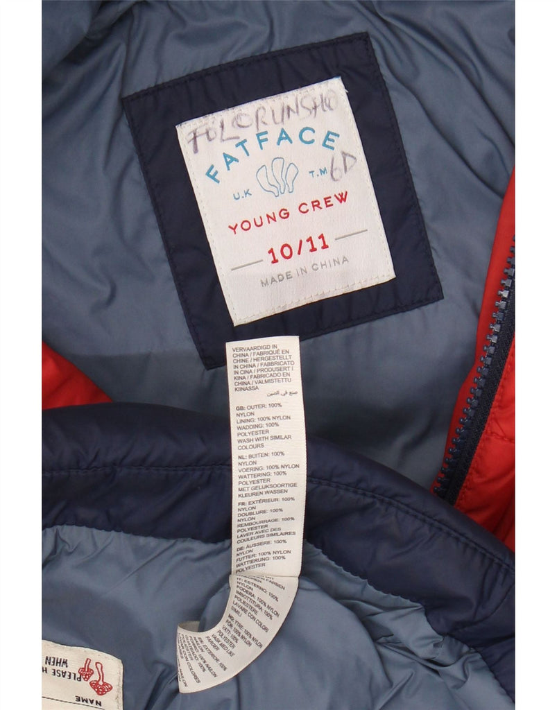 FAT FACE Boys Hooded Padded Coat 10-11 Years Navy Blue Colourblock Nylon