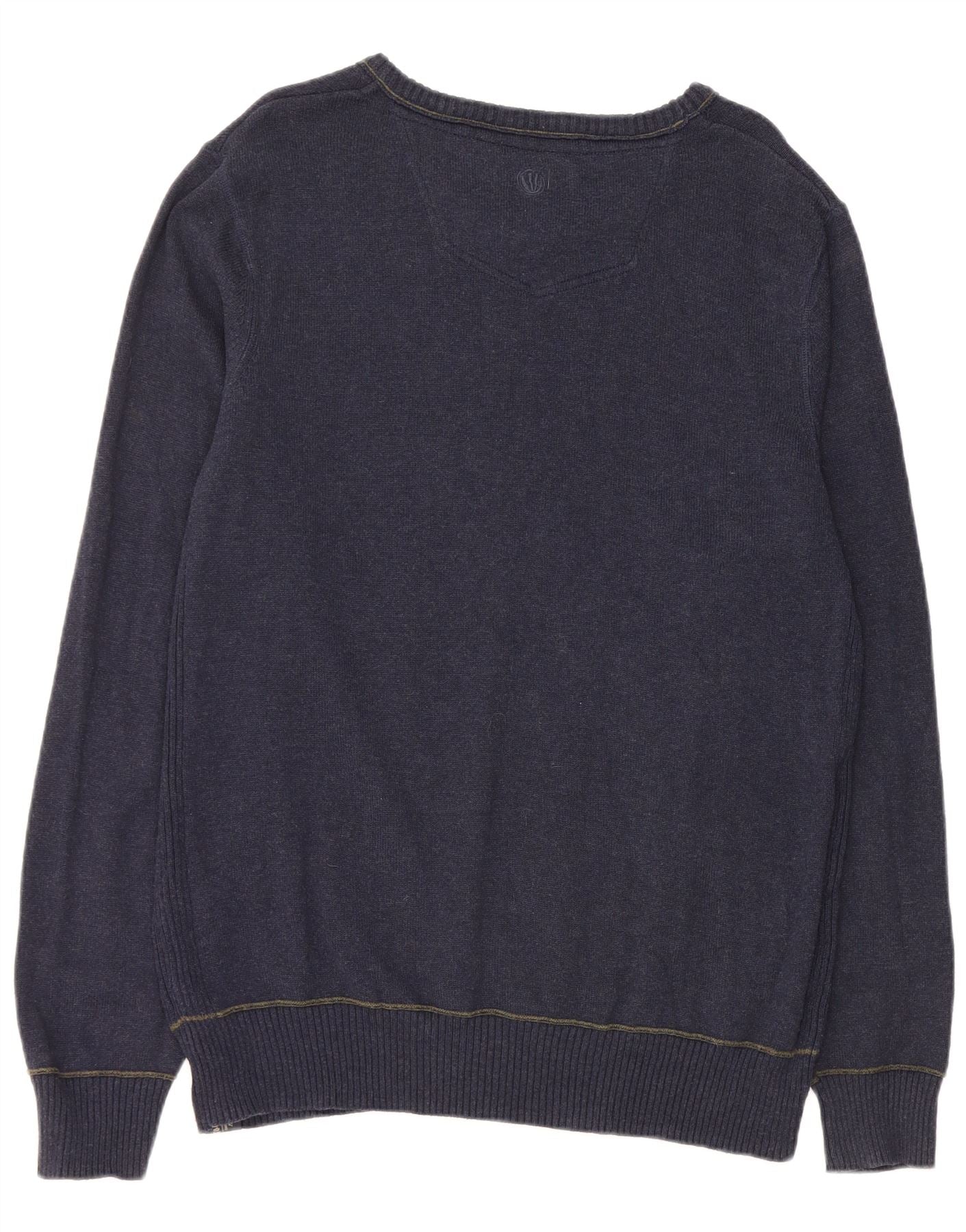 FAT FACE Pulover pentru bărbați cu gât de barcă, mare din bumbac bleumarin