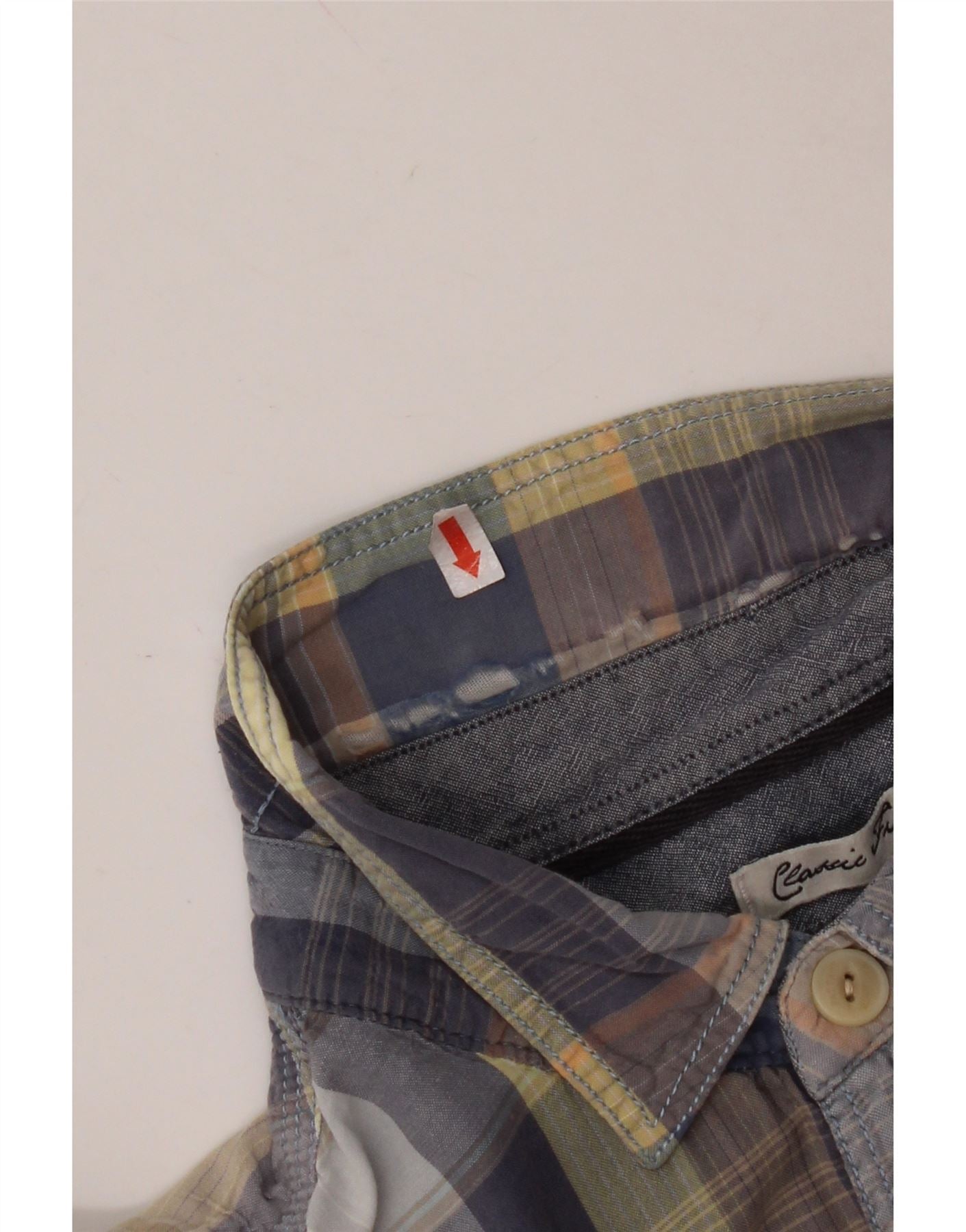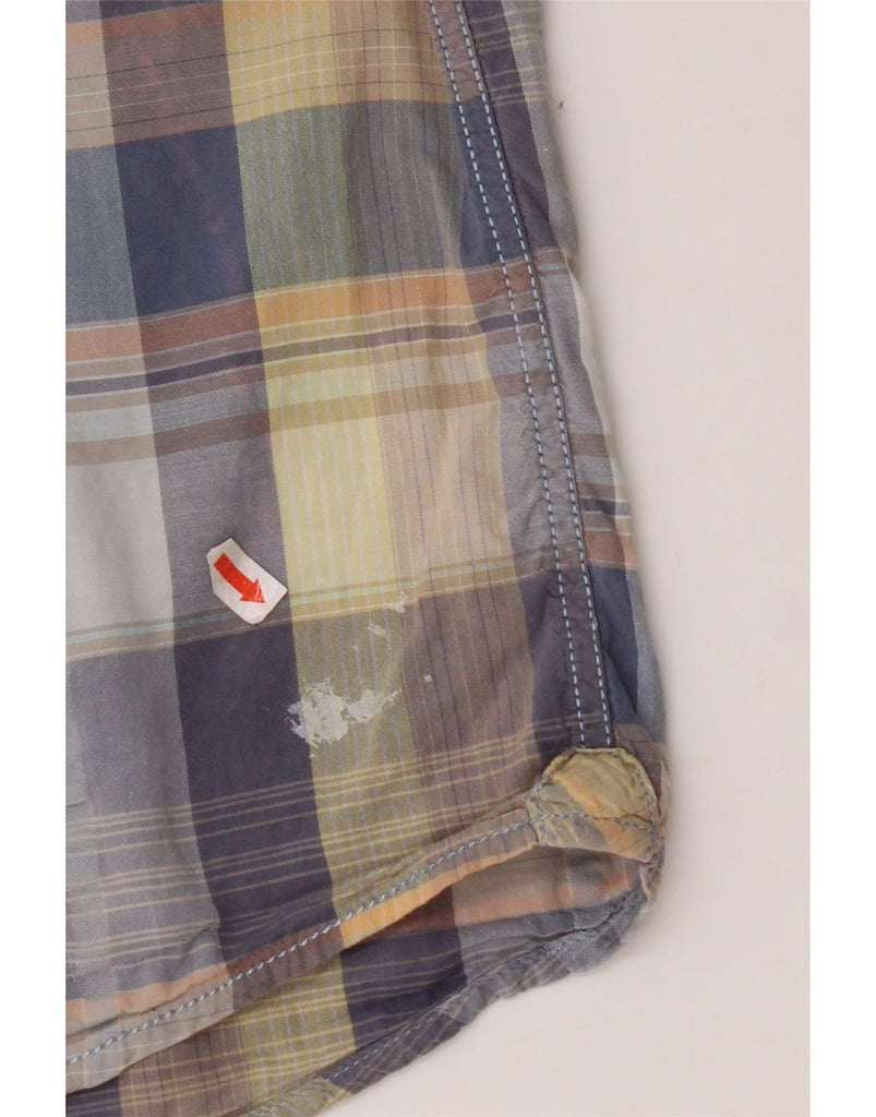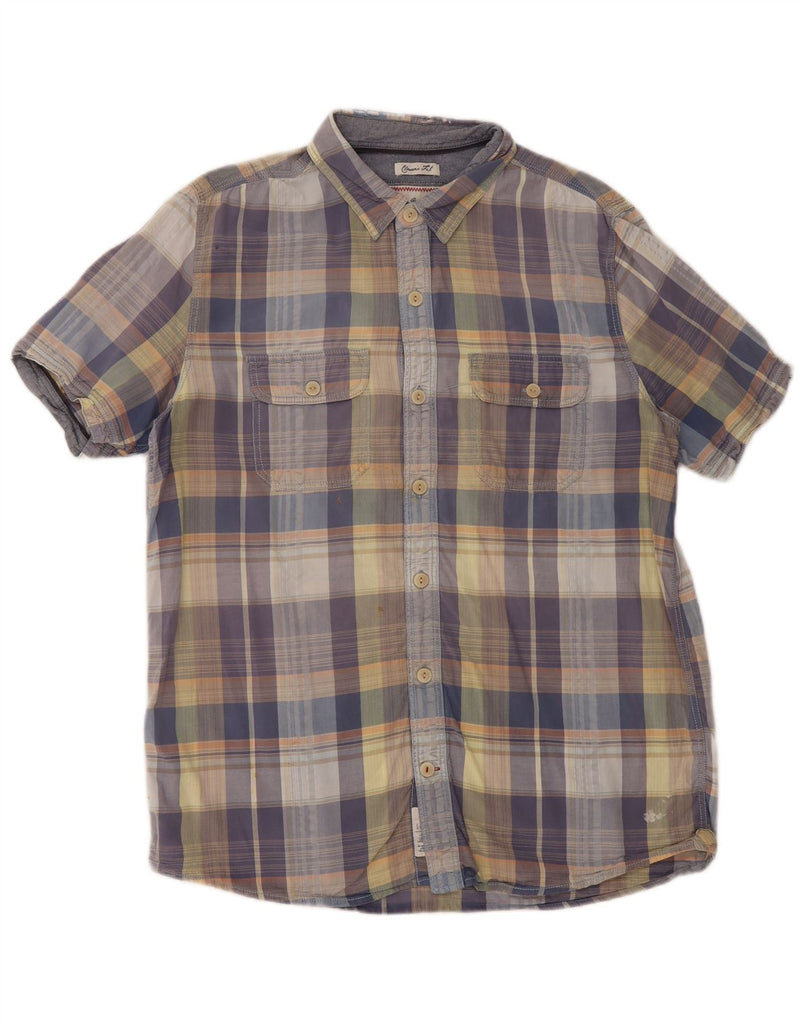 FAT FACE Mens Classic Fit Short Sleeve Shirt Large Blue Check Cotton