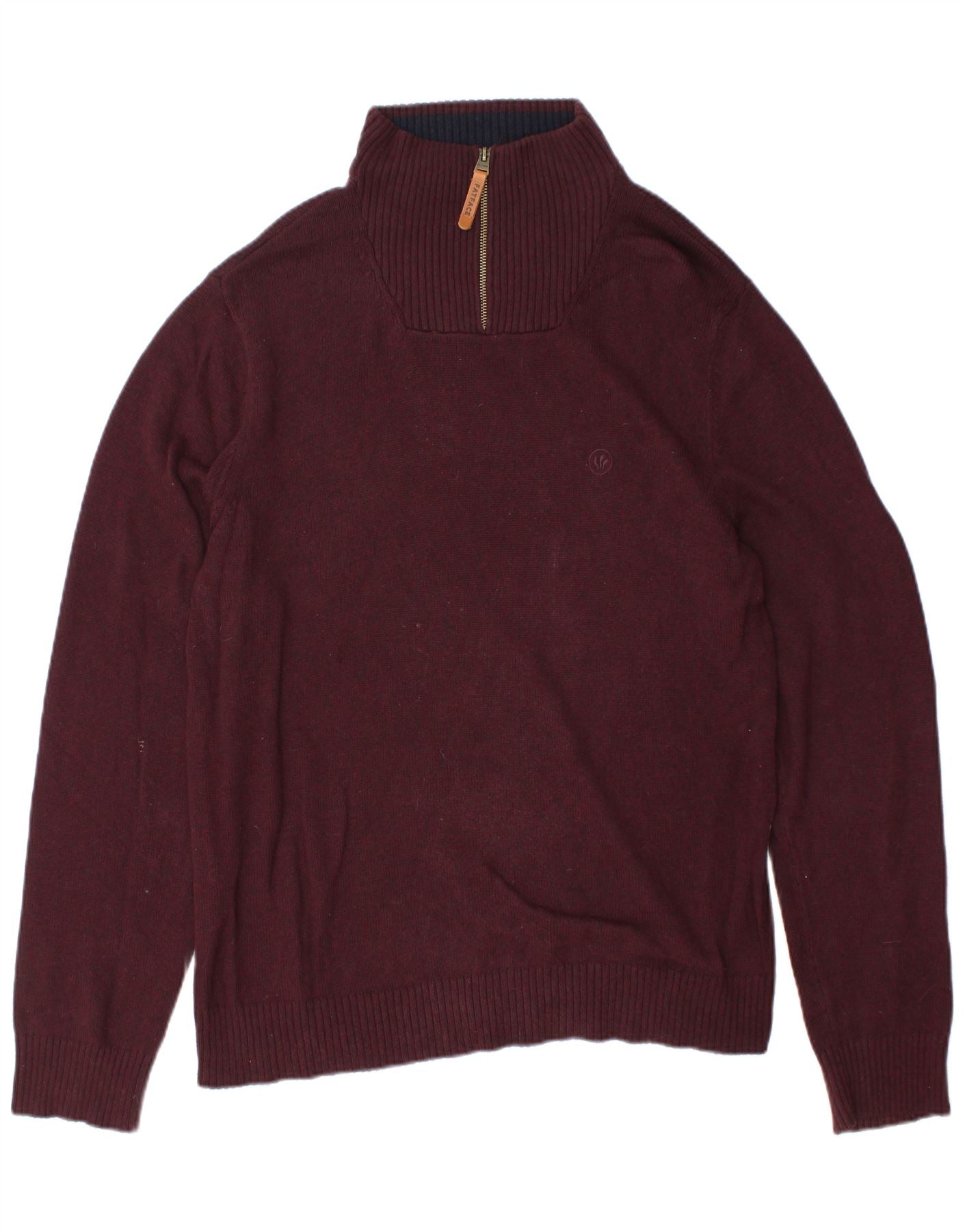 FAT FACE Pulover pentru bărbați, cu fermoar, cu gât, din bumbac mare, bordeaux