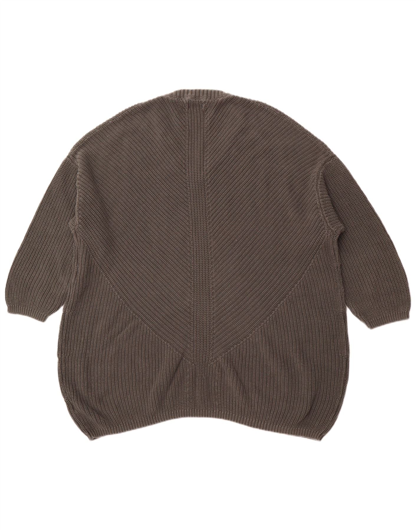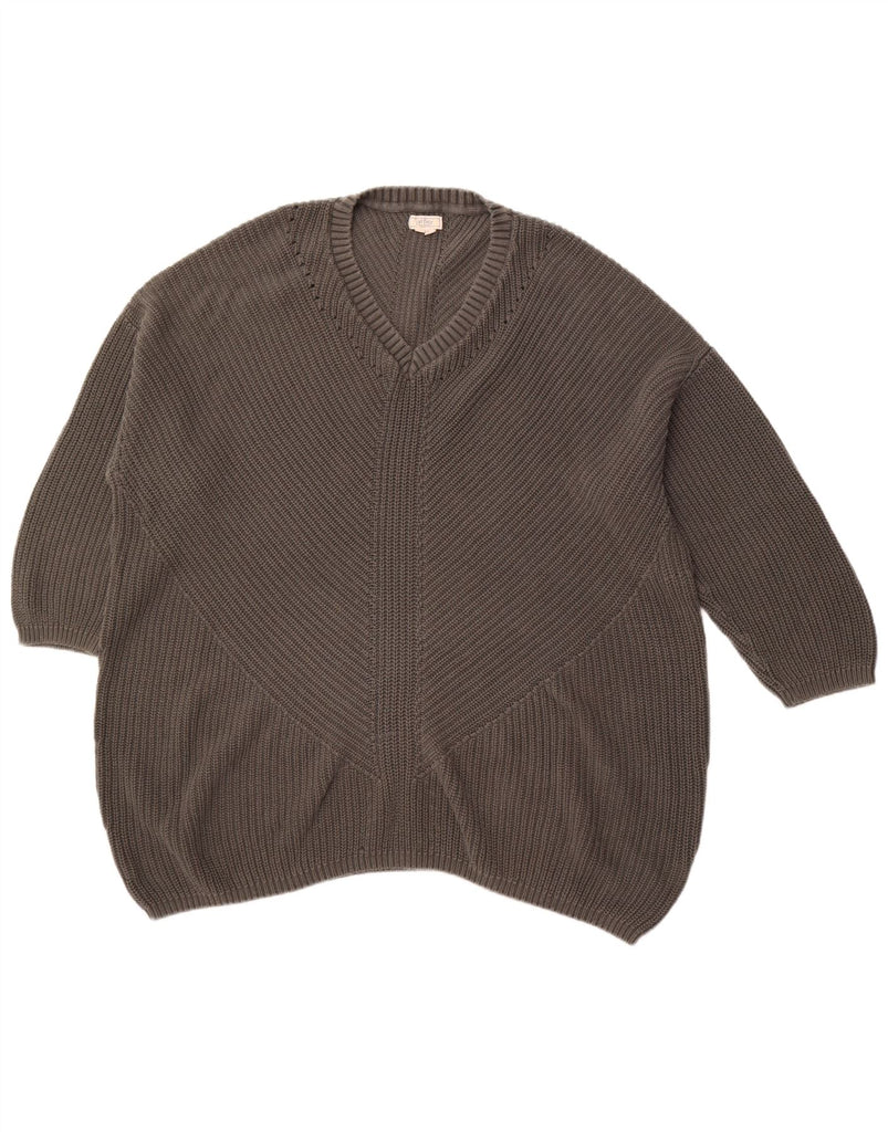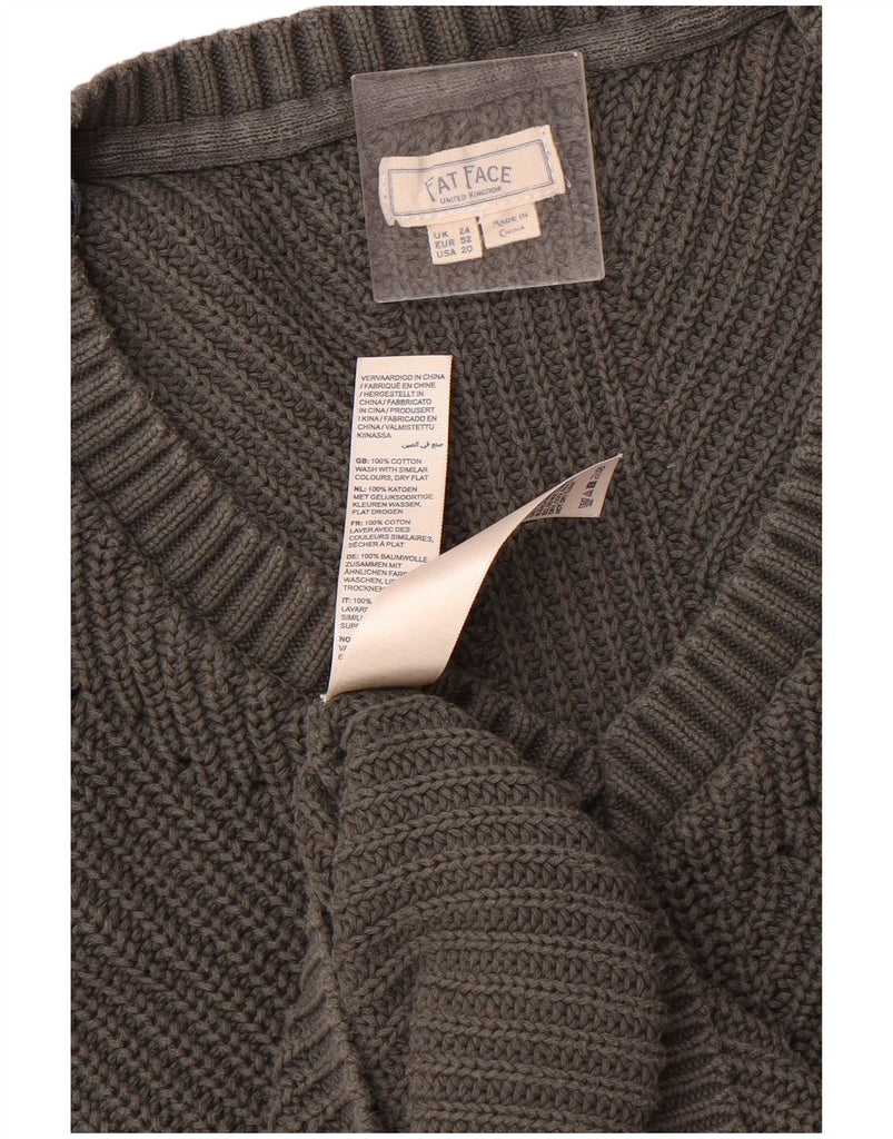 FAT FACE Womens 3/4 Sleeve V-Neck Jumper Sweater UK 24 4XL Grey Cotton