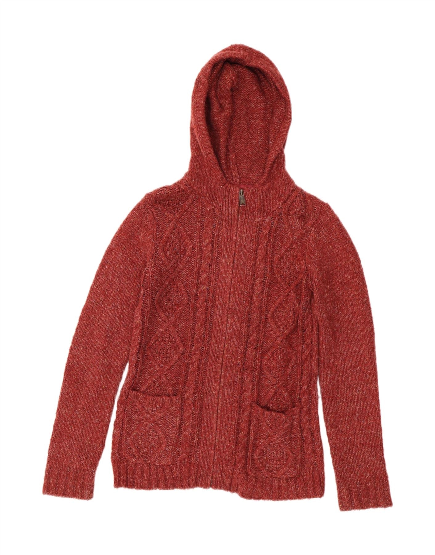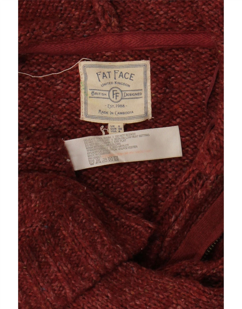 FAT FACE Womens Hooded Cardigan Sweater UK 8 Small Burgundy Acrylic