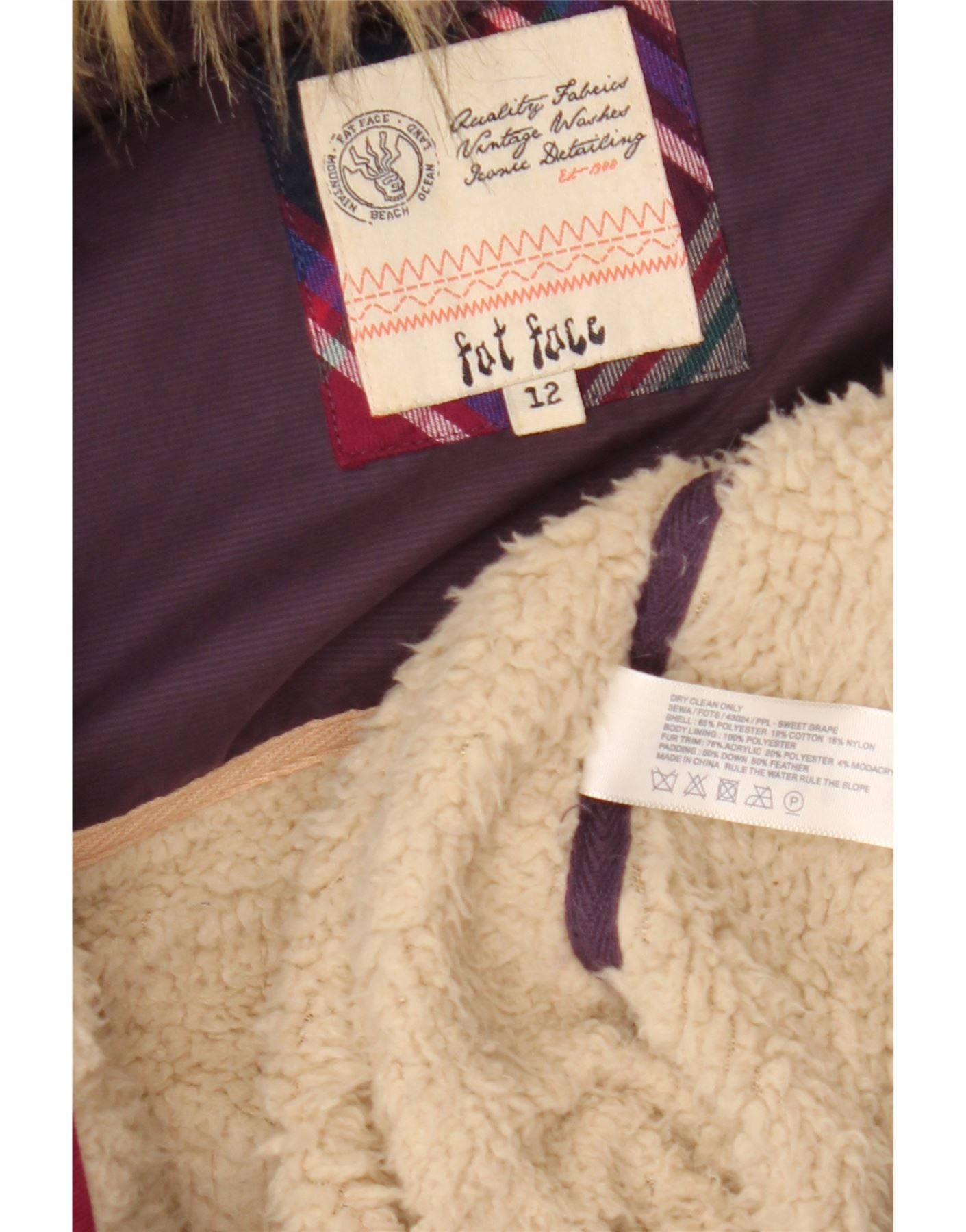 Gilet căptușit cu glugă pentru femei Fat Face UK 12 Poliester violet mediu