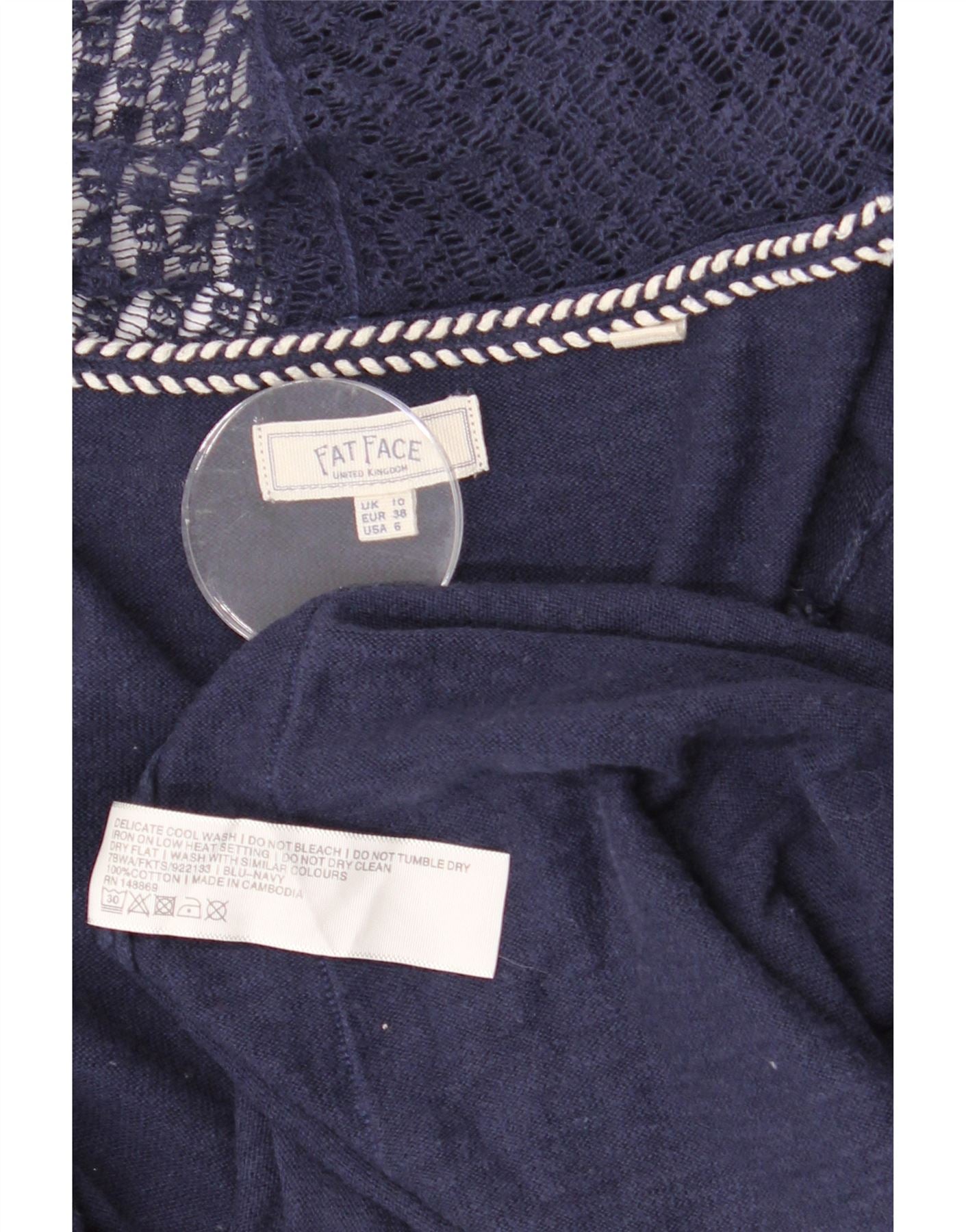 FAT FACE Pulover cardigan deschis pentru femei UK 10 mic Bumbac bleumarin
