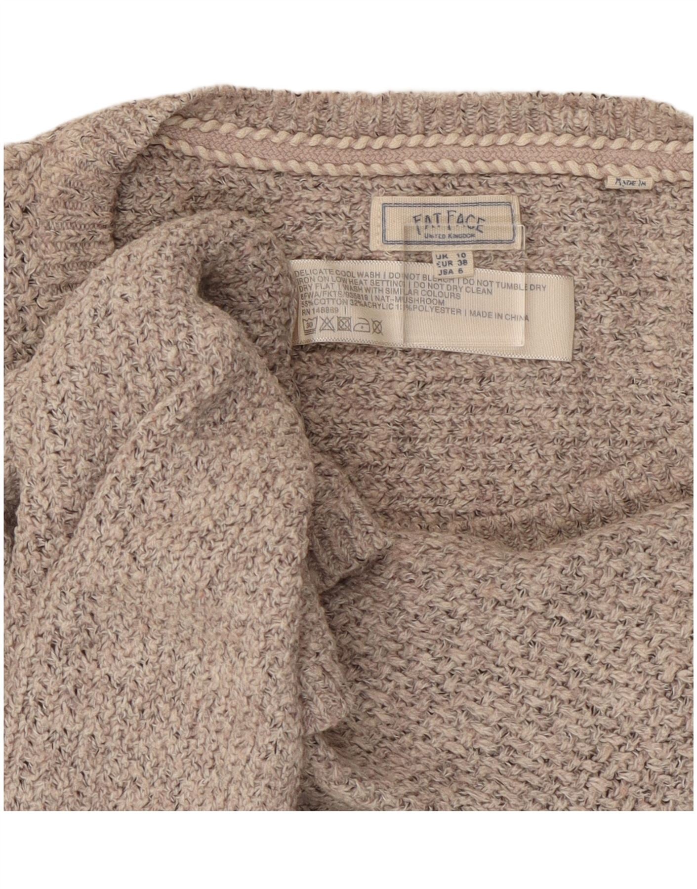 Pulover pentru femei Fat Face, supradimensionat, cu gât de barcă, UK 10, bumbac, gri mic