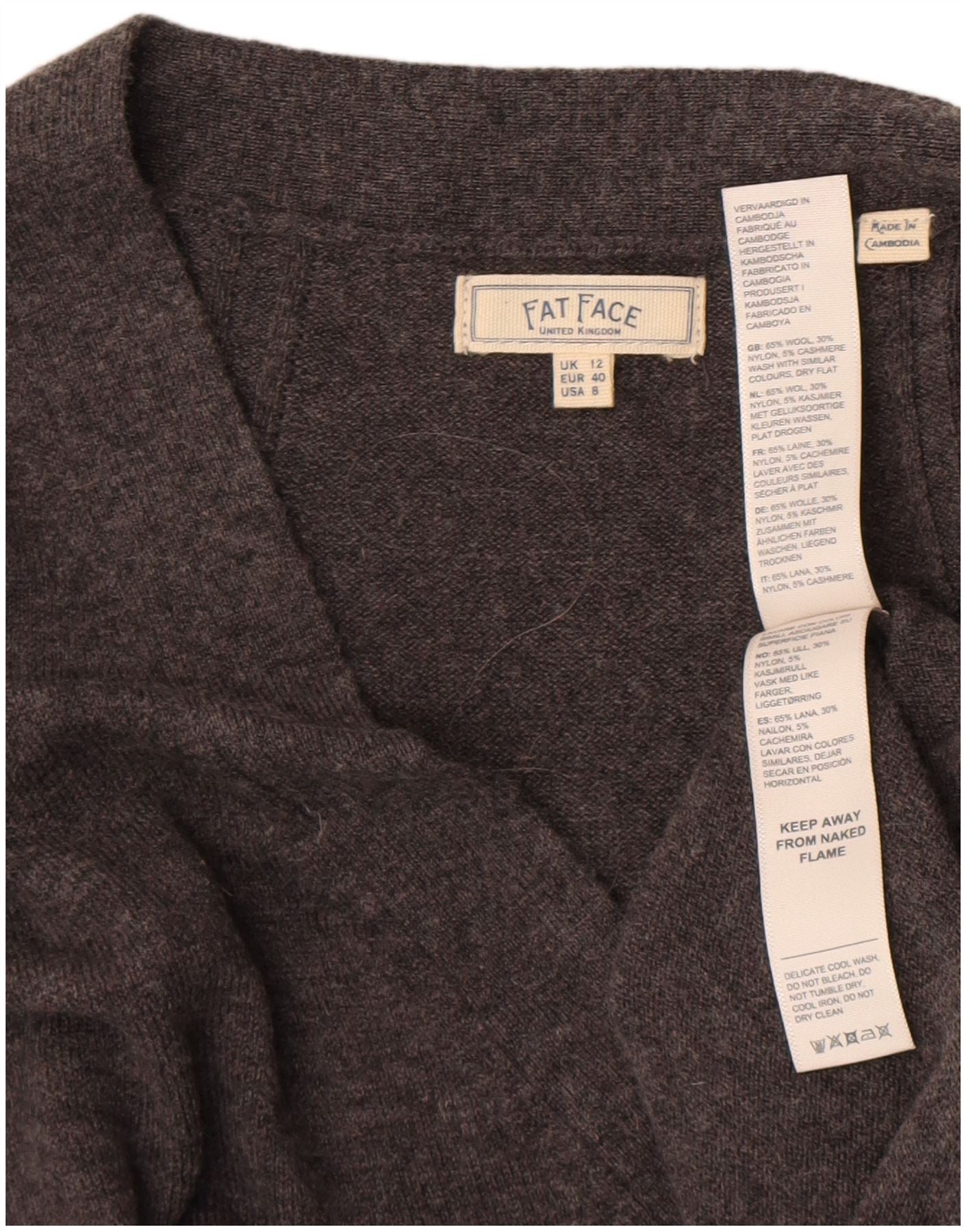 Pulover pentru femei Fat Face supradimensionat cu decolteu în V UK 12 Lână gri mediu