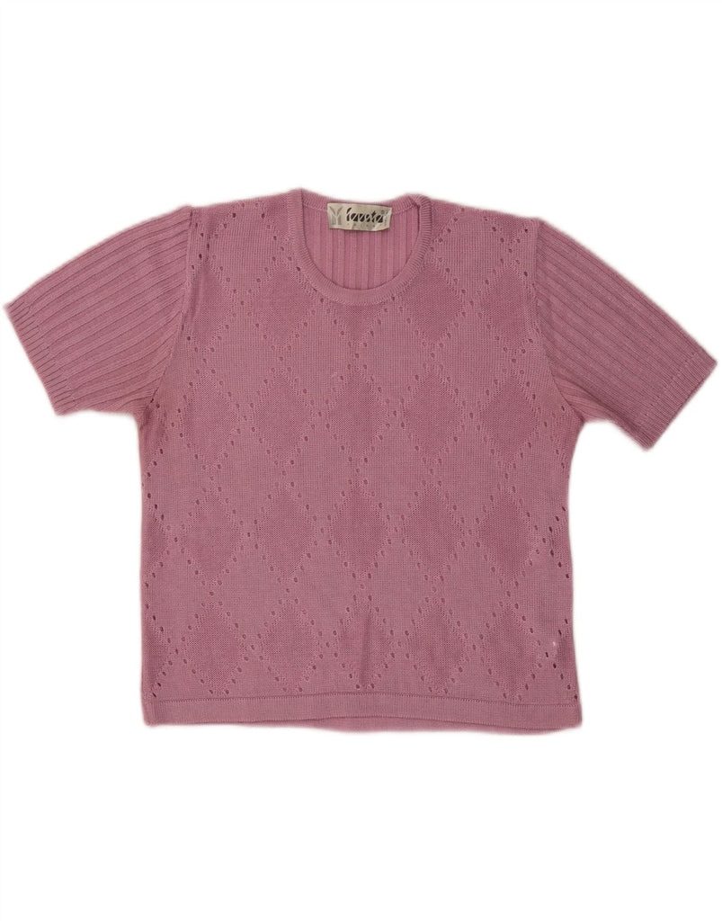 Pulover pentru femei FAUSTA cu mânecă scurtă și cu gâtul tripu, UK 10 Mic, roz