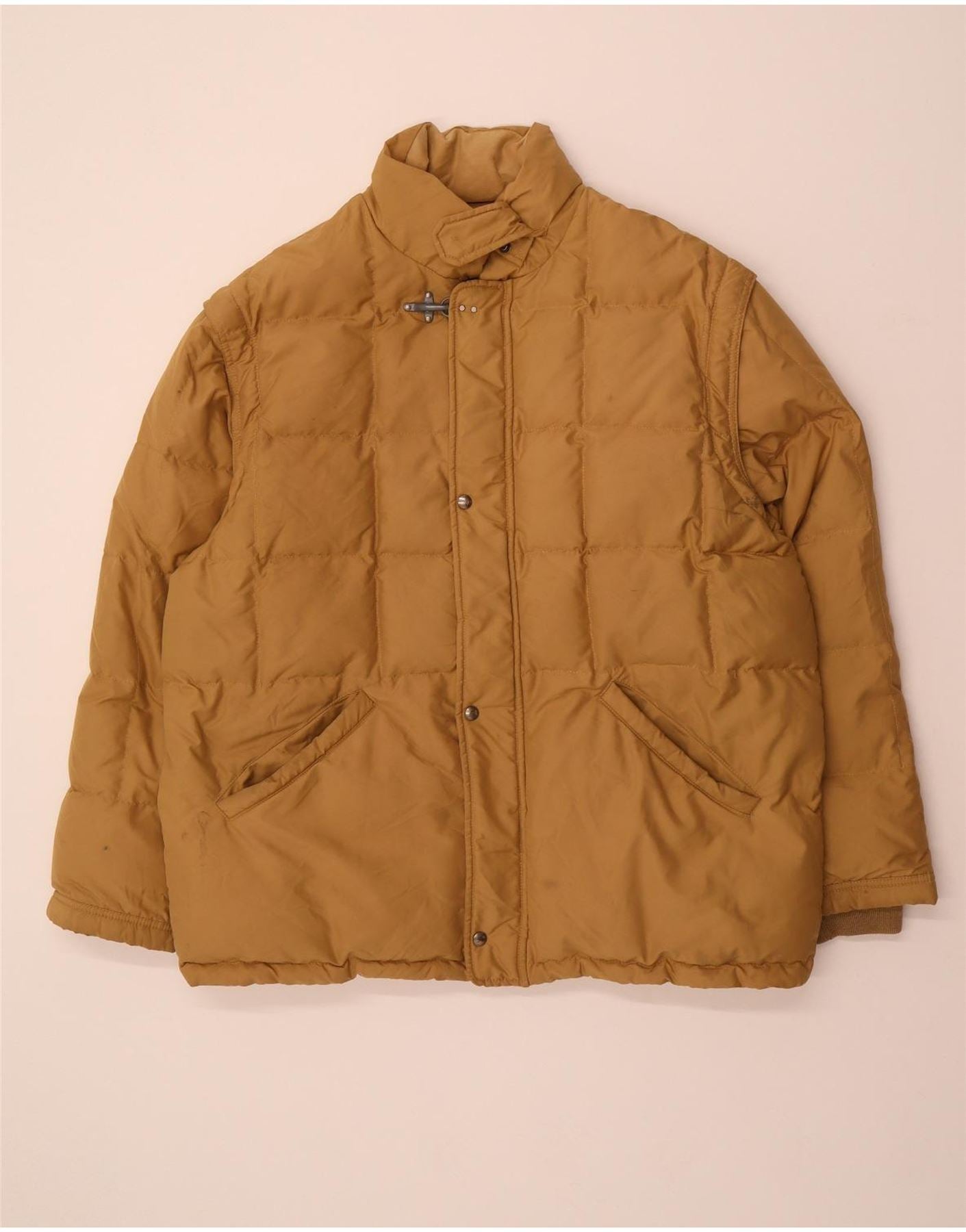 • AI Description: This Fay men's padded jacket is crafted from a warm, down-filled fabric in a rich brown hue. The padded design offers excellent thermal insulation for colder weather. It features a high neck and long sleeves, ensuring full coverage. A full zip closure provides practicality, complemented by multiple pockets for storage. These pockets feature both zip and button accents. The regular fit allows for comfortable layering, creating a classic and functional outerwear piece.