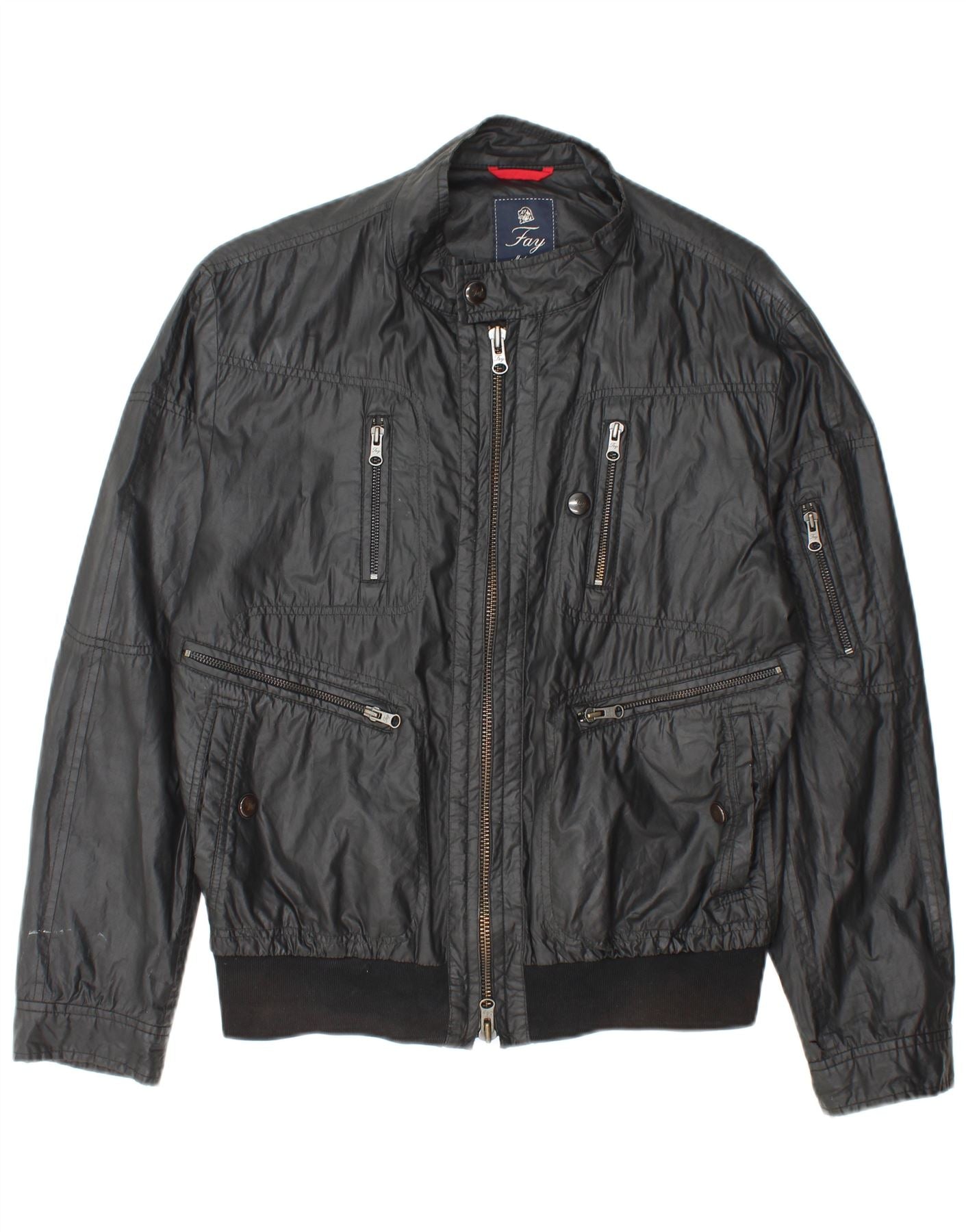 Jachetă bomber din bumbac cerat pentru bărbați FAY UK 40, bumbac negru mare