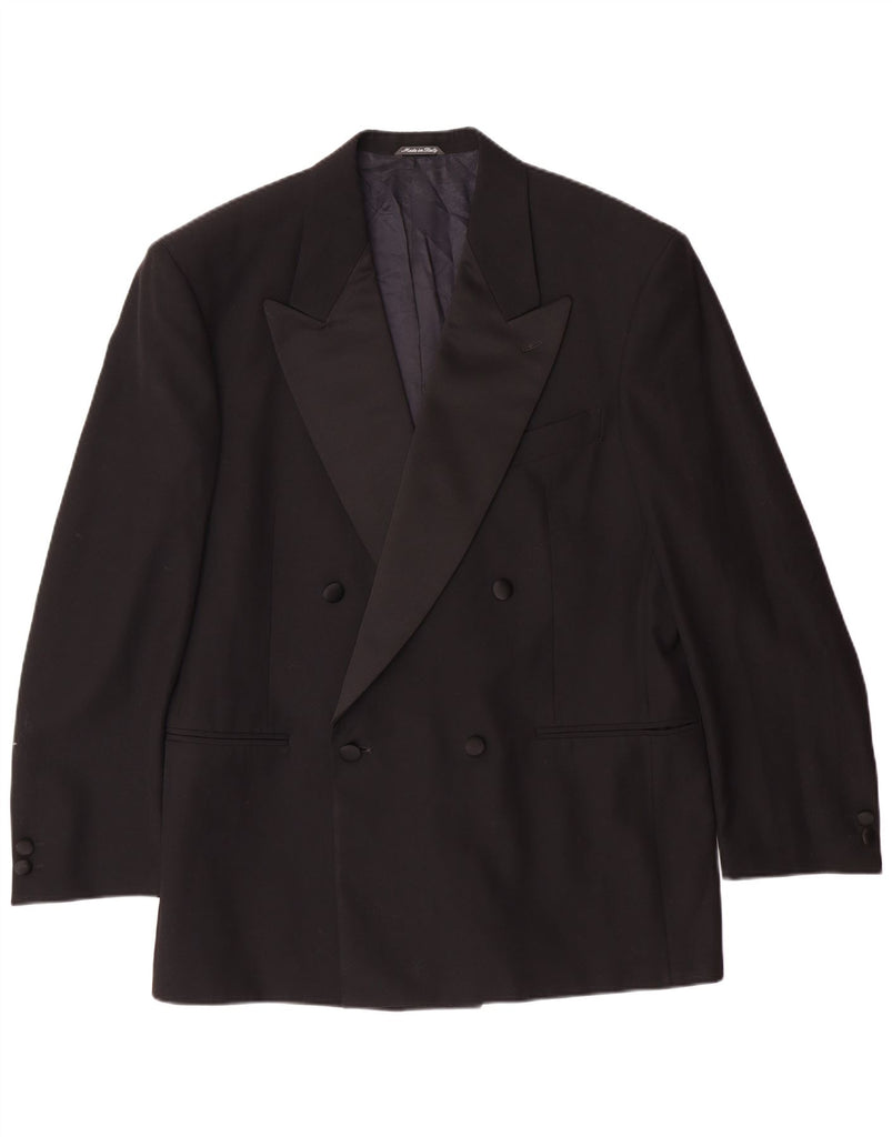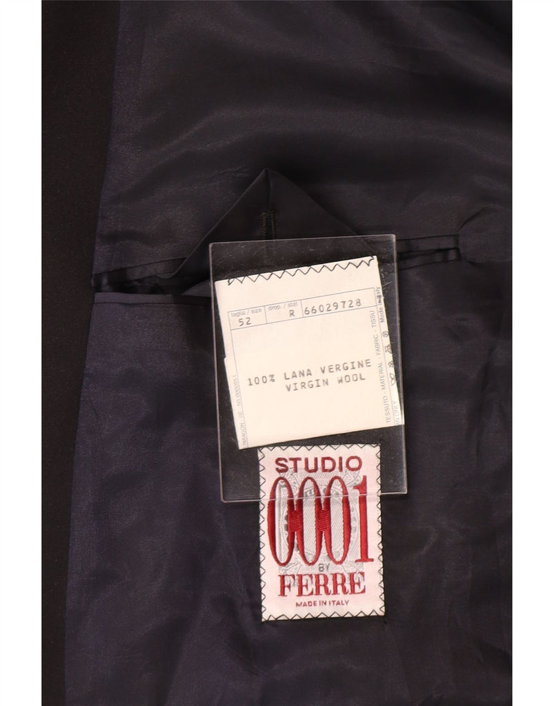 FERRE Mens Double Breasted Blazer Jacket IT 52 XL Black Virgin Wool