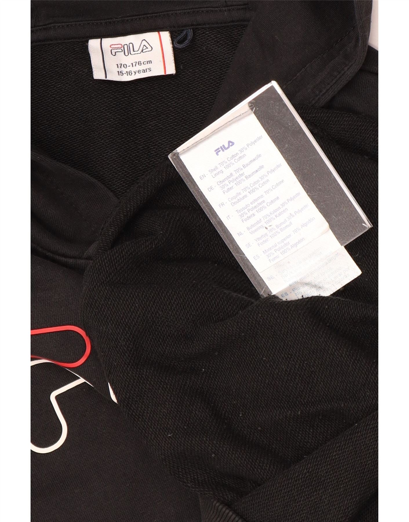 Pulover cu capota cu grafic FILA pentru baieti 15-16 ani, bumbac negru