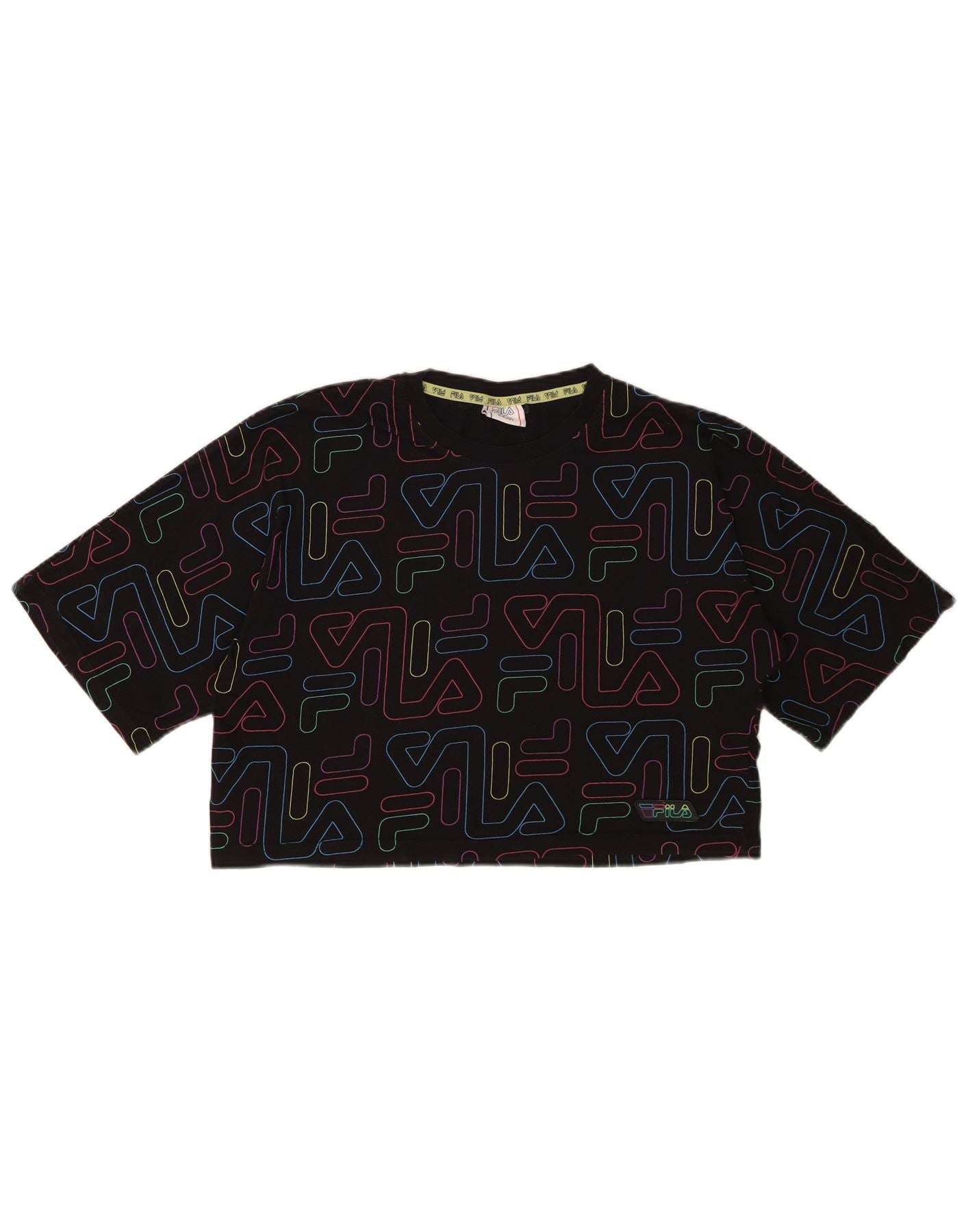 Tricou cu grafic crop FILA pentru fete Top 15-16 ani bumbac negru