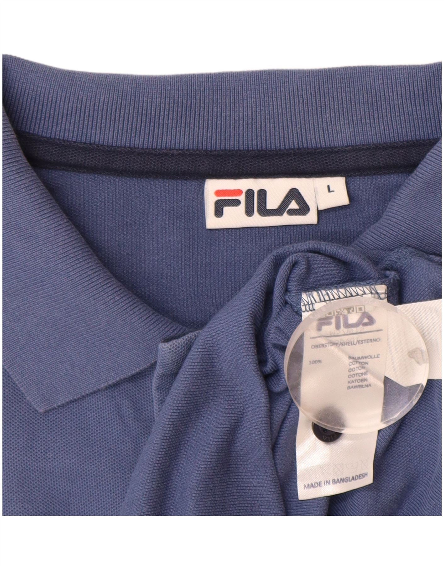 Cămașă polo pentru bărbați FILA cu mânecă lungă din bumbac albastru mare