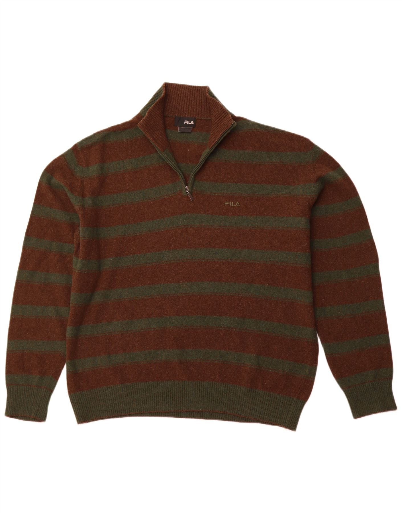Pulover FILA pentru bărbați, cu fermoar, cu gât, XL, cu dungi maro