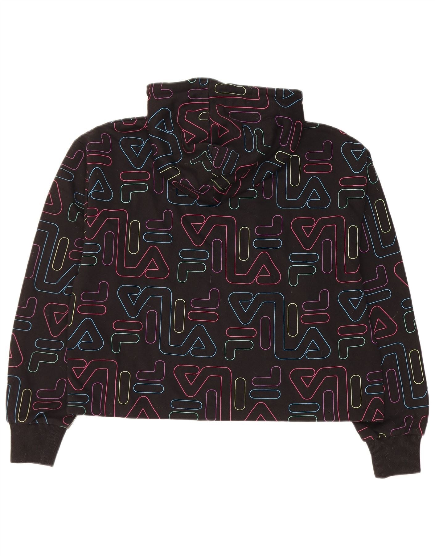 Pulover FILA pentru femei Crop Graphic Hoodie UK 14 Medium Black Bumbac