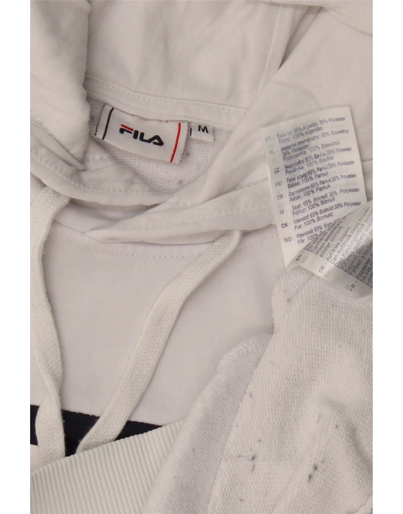 Home > Femei > Îmbrăcăminte Depop > Pulover cu glugă cu grafic FILA pentru femei UK 14 Medium White Colorblock Bumbac