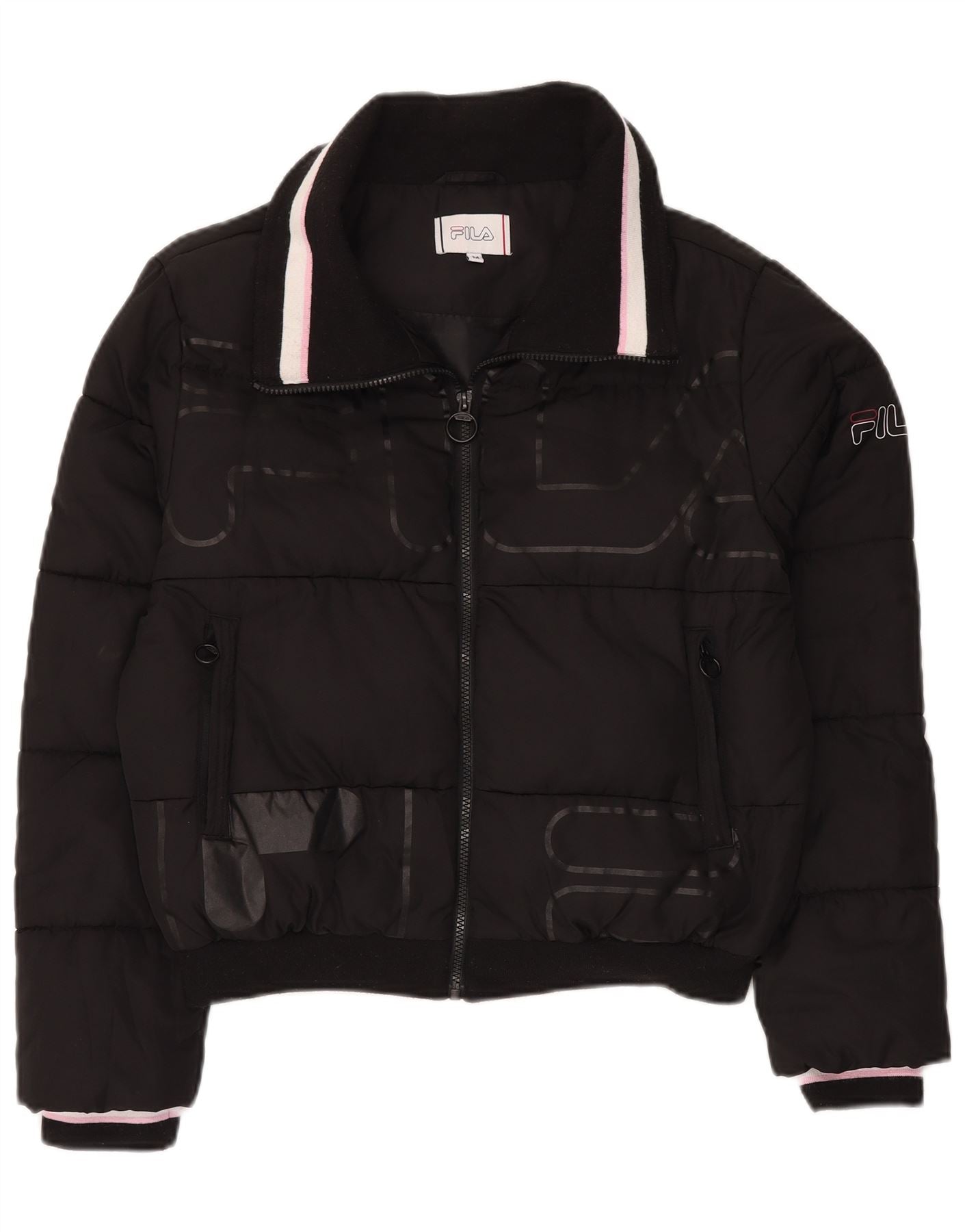 Home > Femei > Îmbrăcăminte Depop > Jachetă căptușită cu grafică pentru femei FILA UK 14 Poliester mediu negru