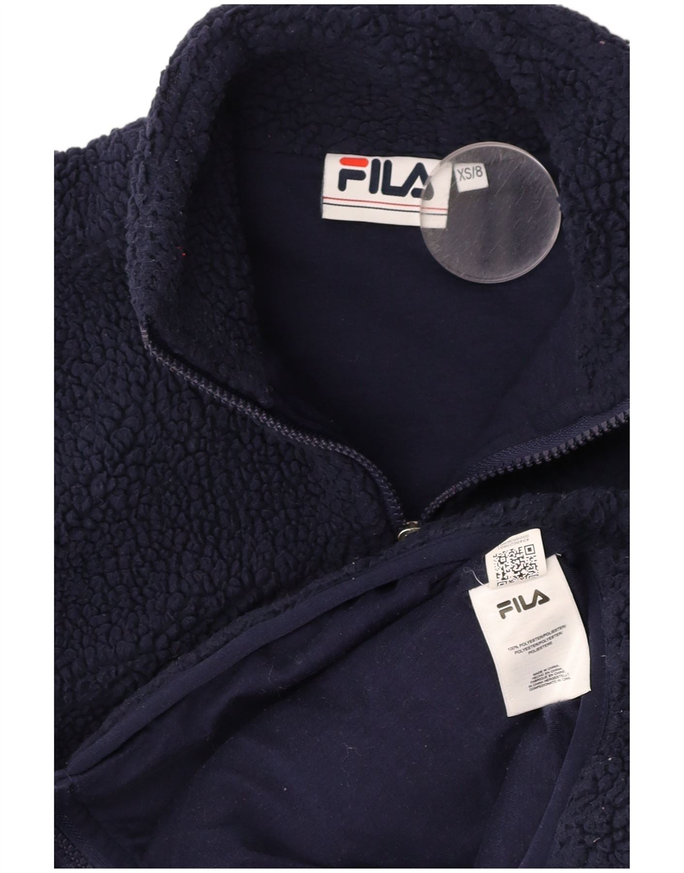 Home > Femei > Îmbrăcăminte Depop > Jachetă cu fleece grafică supradimensionată pentru femei FILA UK 6 XS poliester bleumarin