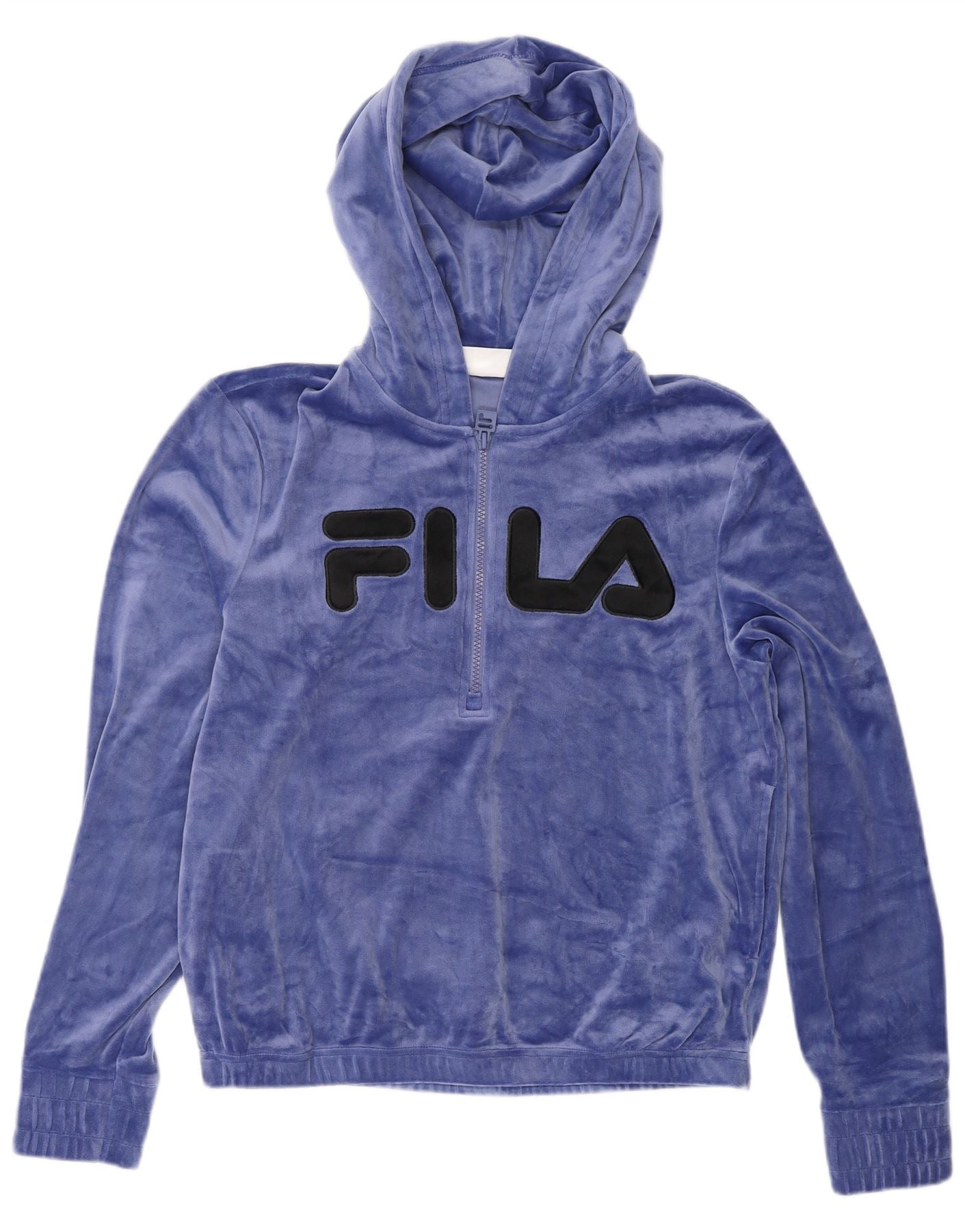 FILA Womens Oversized Graphic Velvet Hoodie Jumper UK 10 Small Purple