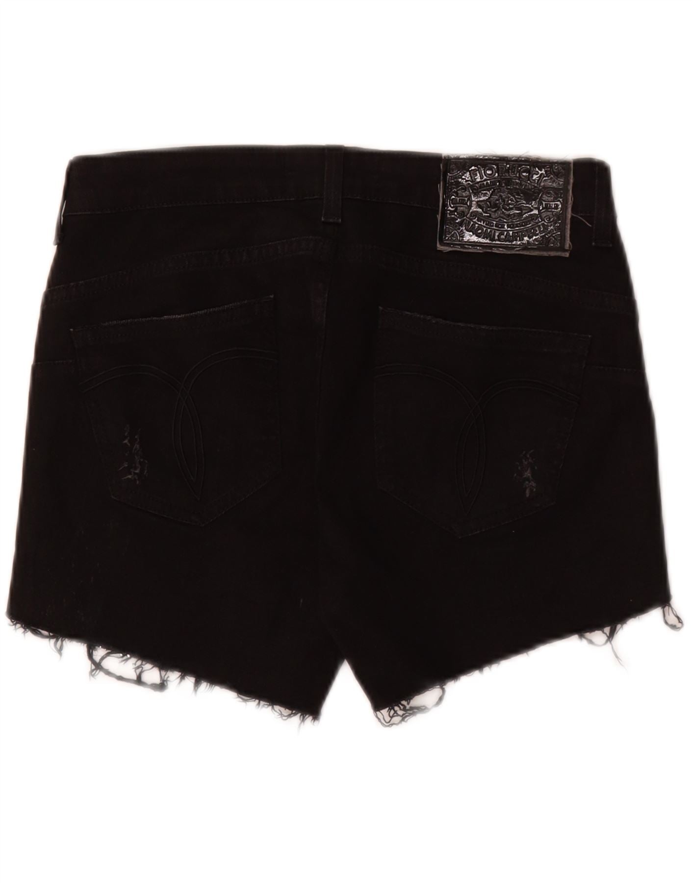 FIORUCCI Womens Distressed Denim Shorts W30 Medium Black Cotton
