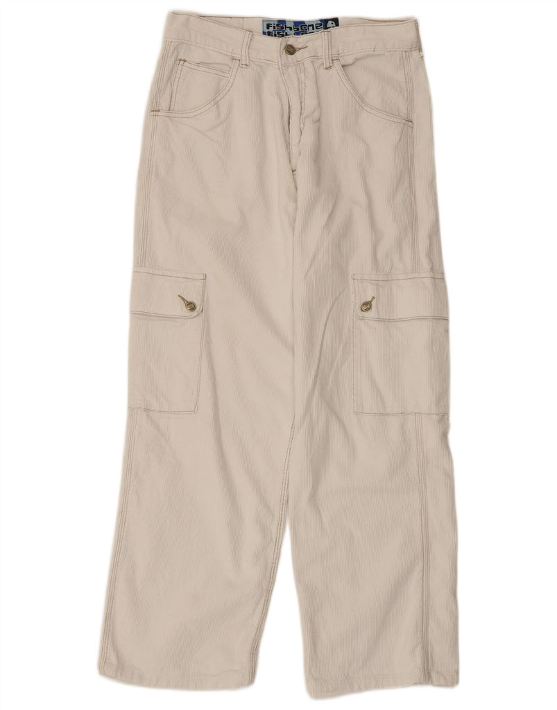 FISHBONE Mens Straight Cargo Corduroy Trousers Medium W30 L28 White Cotton