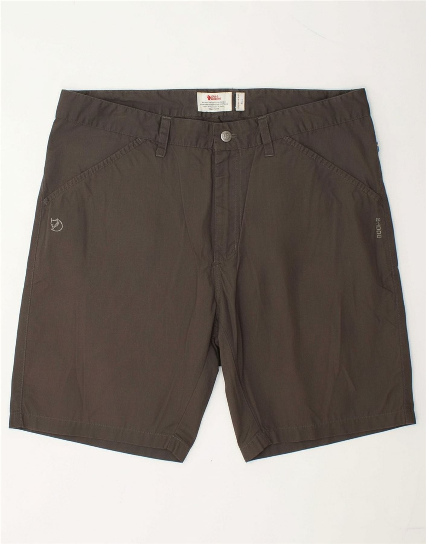 - AI Description: These Fjall Raven men's casual shorts are crafted from a durable brown woven fabric. They feature a classic regular fit, ensuring comfort and ease of movement. A robust button closure secures the waistline. Practical pockets offer essential utility for carrying small items. The design embodies timeless, classic style, perfect for everyday wear and outdoor adventures.