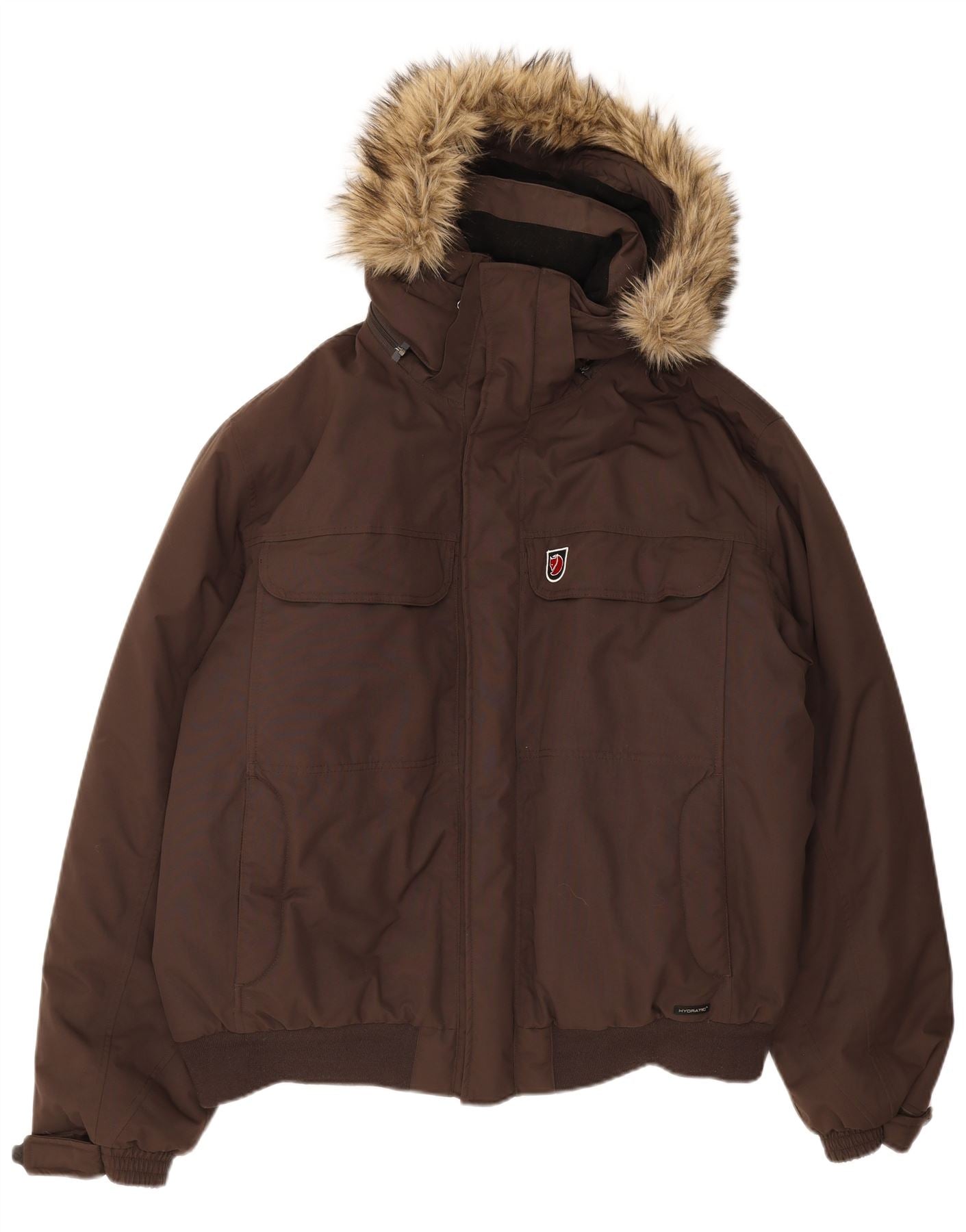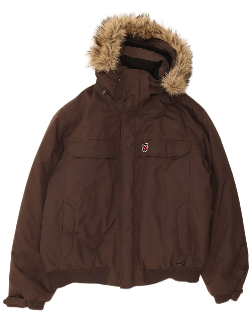 FJALL RAVEN Mens Hooded Bomber Jacket UK 44 2XL Brown Polyester