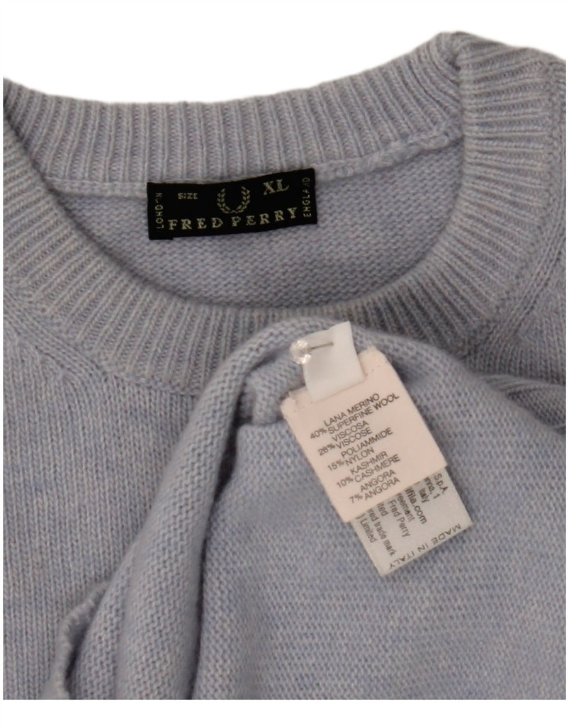 FRED PERRY Girls Crew Neck Jumper Sweater 14-15 Years XL Blue Merino Wool