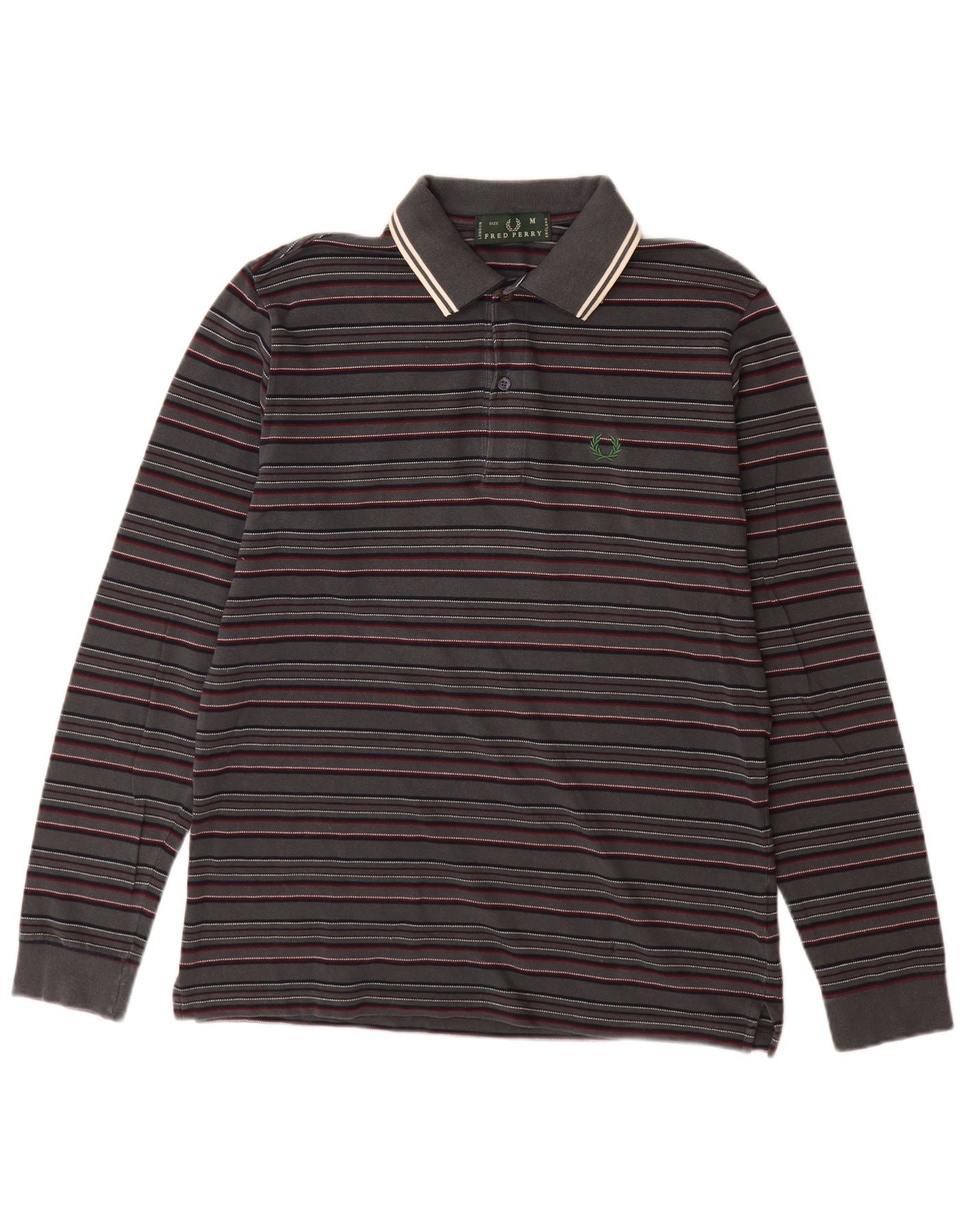 FRED PERRY Tricou polo cu mânecă lungă pentru bărbați, bumbac cu dungi gri mediu