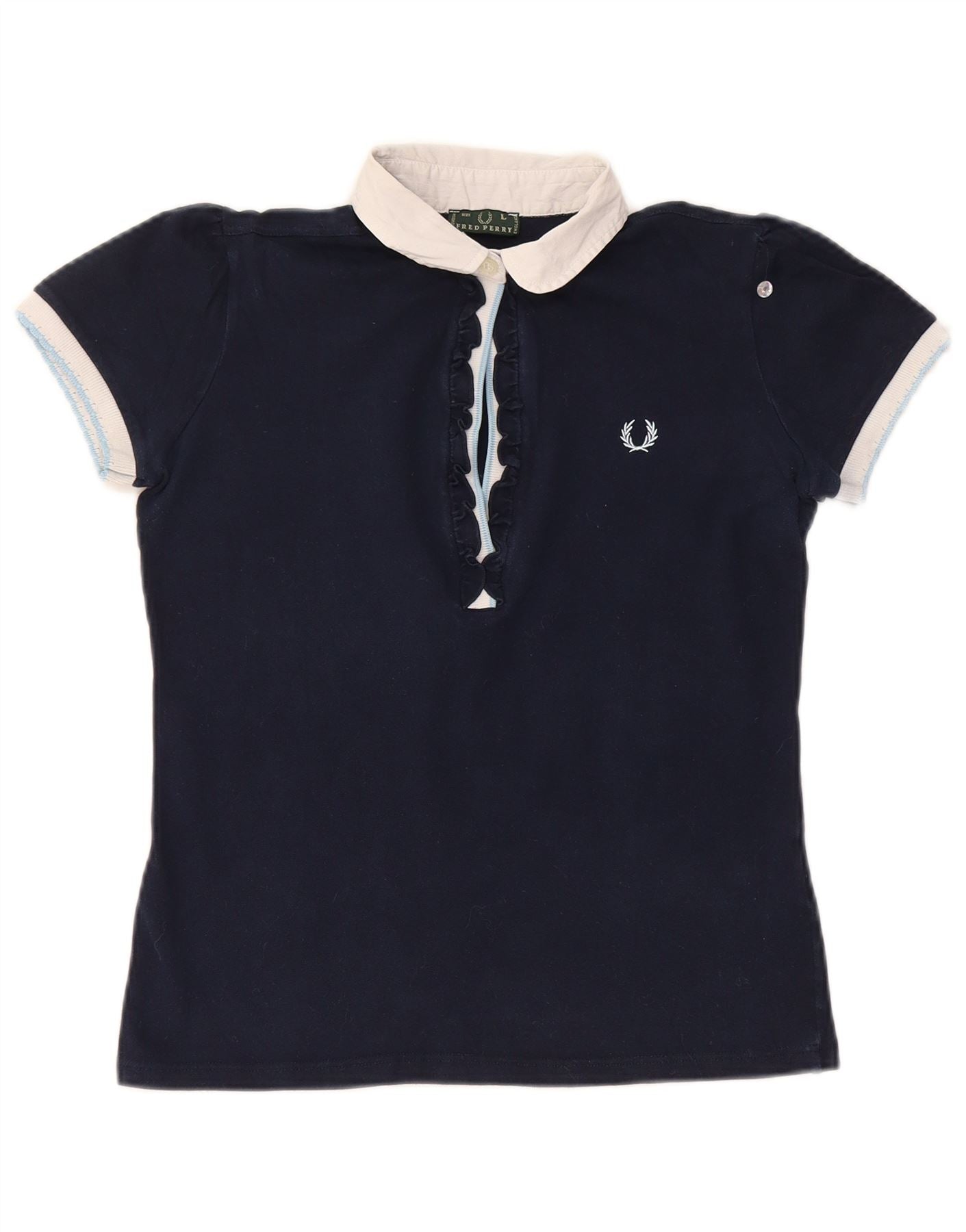 FRED PERRY Tricou polo pentru femei UK 14 mare, albastru marin, bumbac color bloc