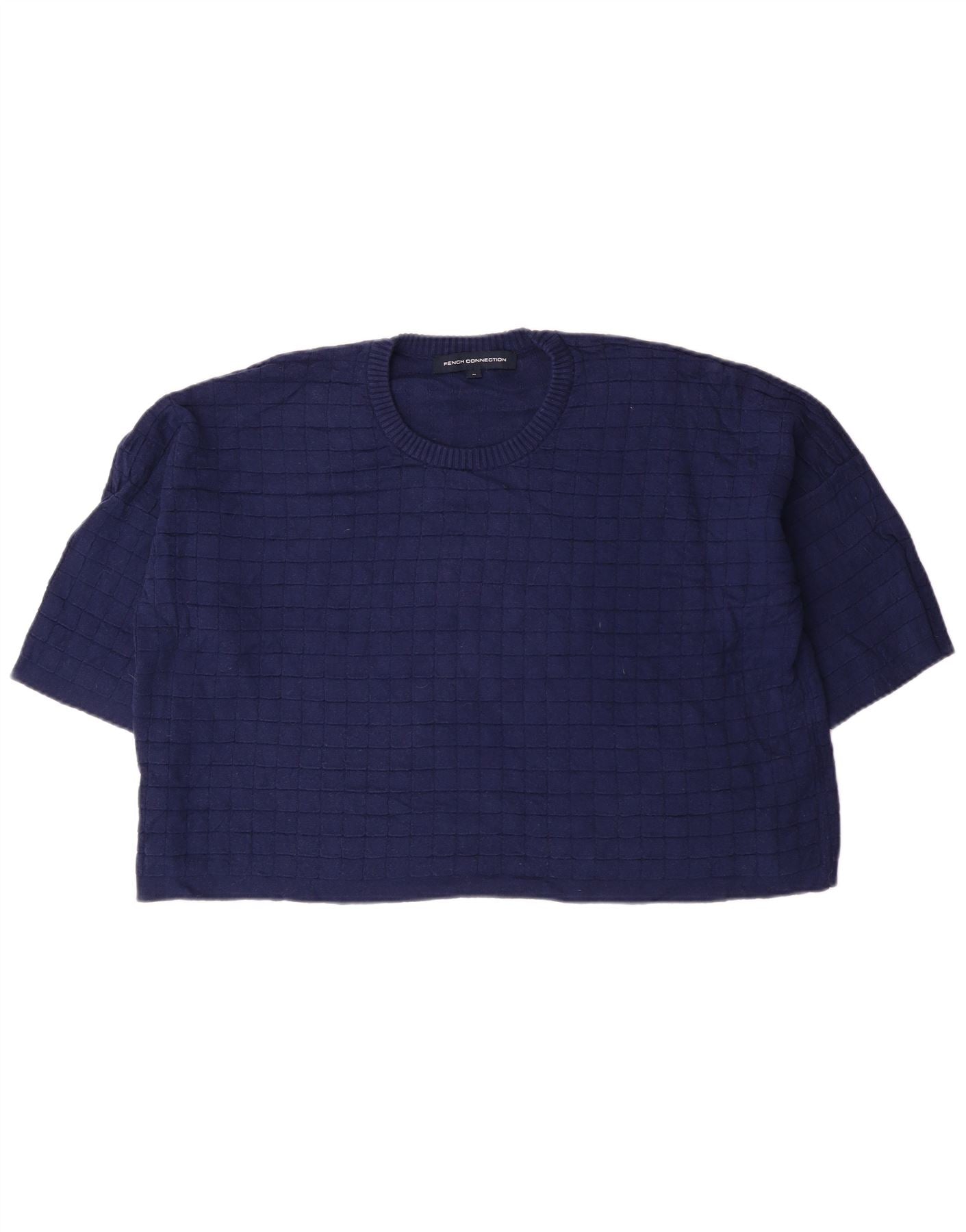 Pulover pentru damă French Connection cu gât roșu, bumbac albastru mediu UK 14