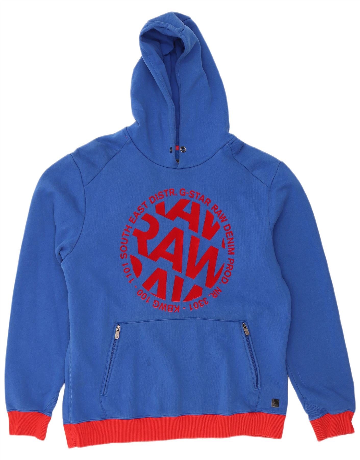 G-STAR Pulover grafic pentru bărbați, 2XL, bumbac color-bloch, albastru