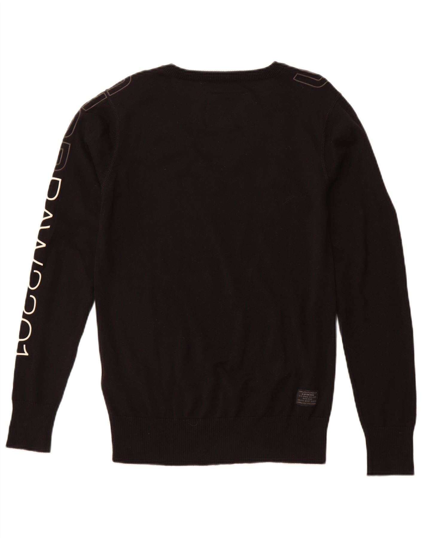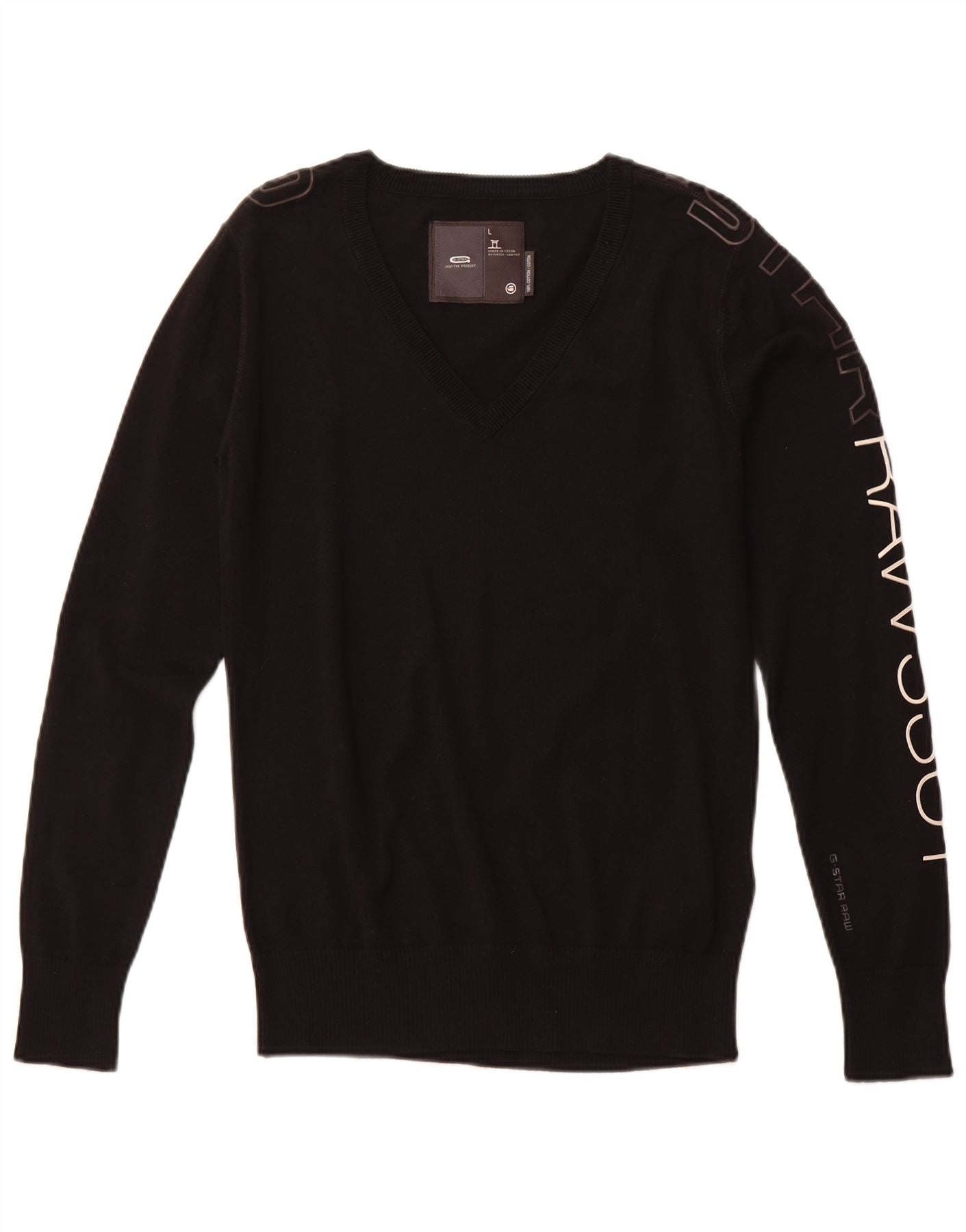 G-STAR Pulover cu decolteu în V cu grafic pentru bărbați, bumbac mare, negru