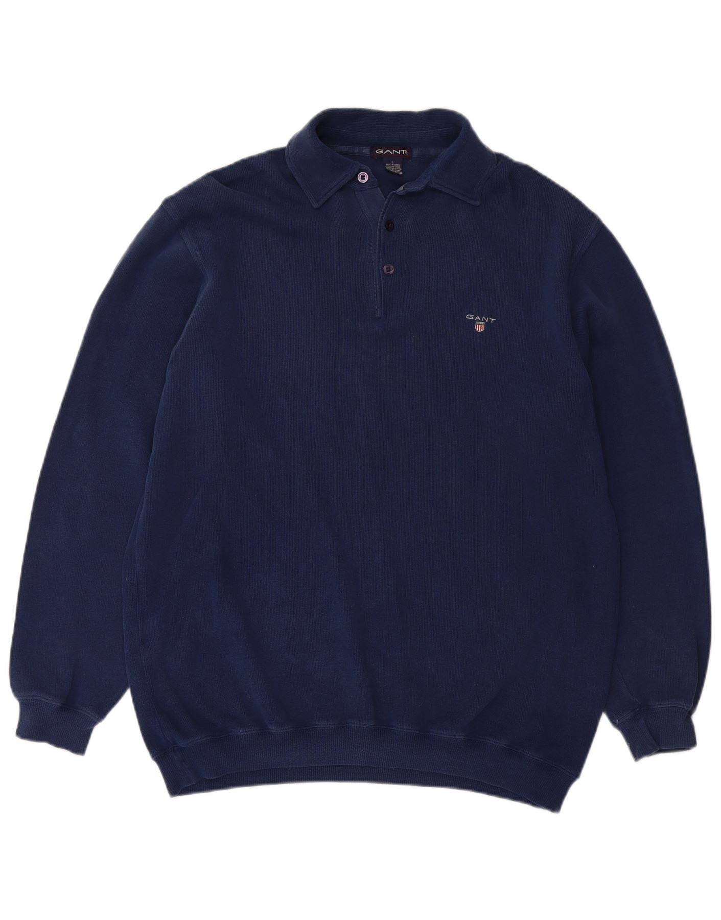 GANT Pulover pentru bărbați cu gât polo mare, bumbac, albastru